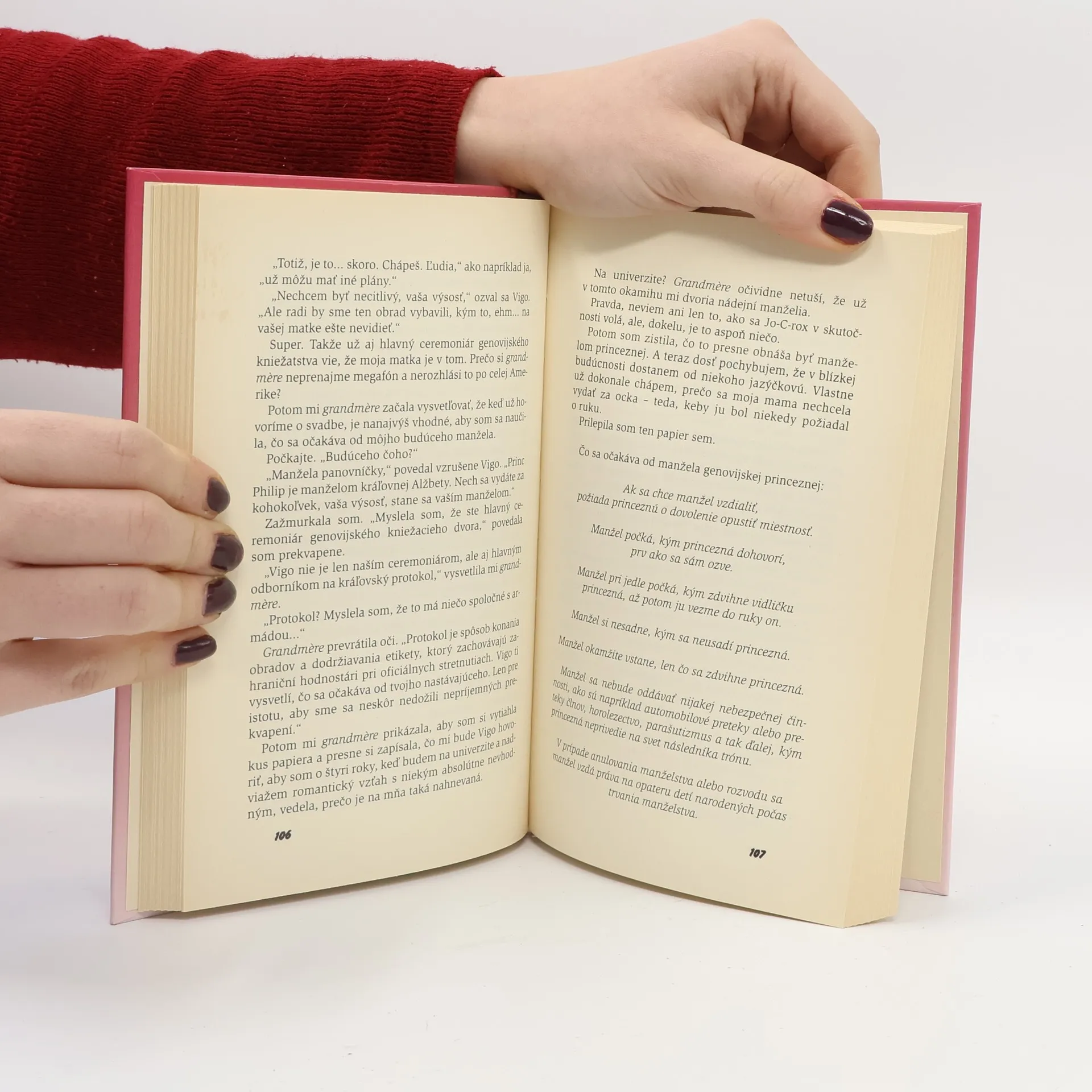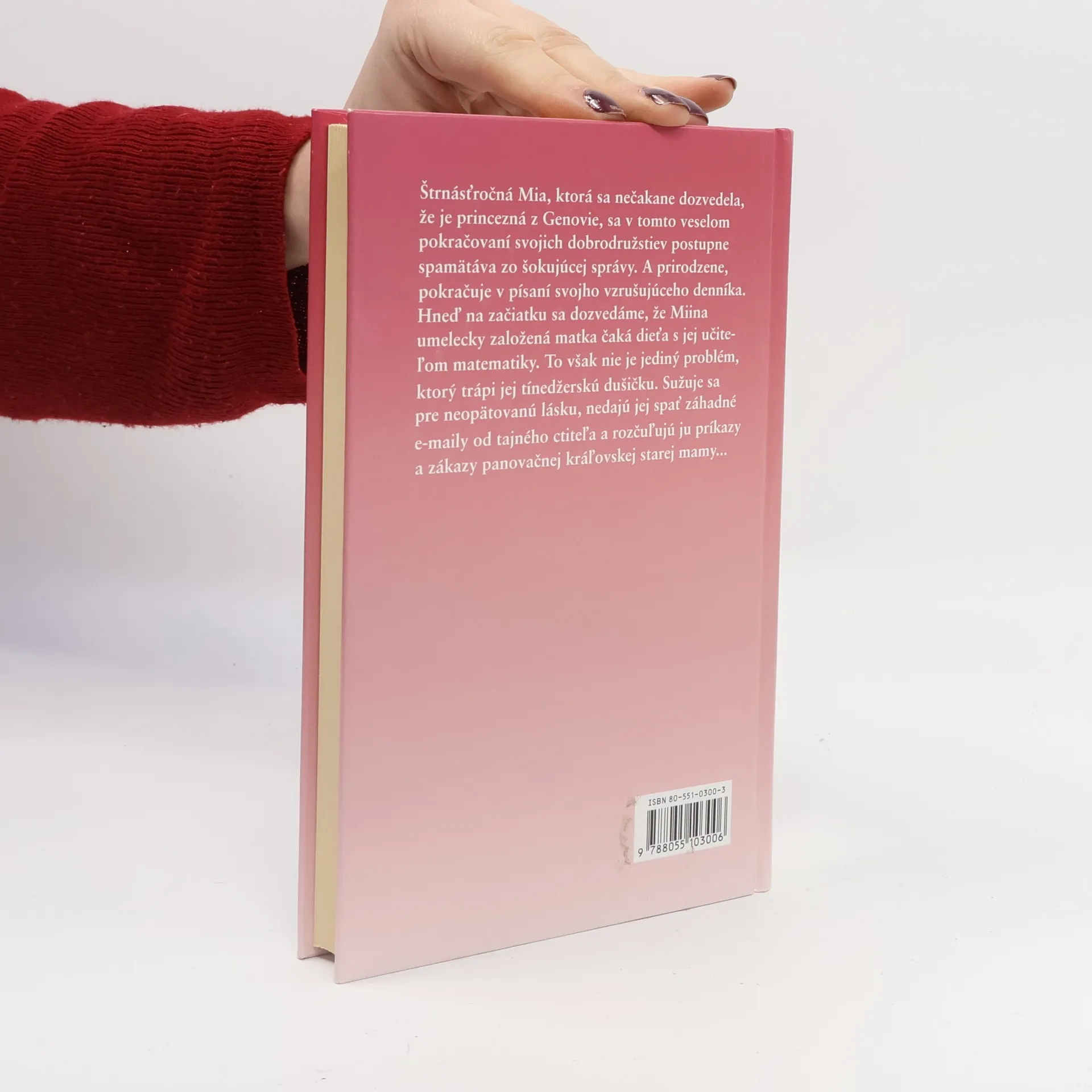 Štrnásťročná Mia, ktorá sa nečakane dozvedela, že je princezná z Genovie, sa v tomto veselom pokračovaní svojich dobrodružstiev postupne spamätáva zo šokujúcej správy. A prirodzene, pokračuje v písaní svojho vzrušujúceho denníka. Hneď na prvých stránkach sa dozvedáme, že Miina umelecky založená matka čaká dieťa s Miin učiteľom matematiky. Toto však nie je jediný problém, ktorý trápi hrdinkinu tínedžerskú dušičku. Trápi sa pre neopätovanú lásku k bratovi svojej najlepšej priateľky, nedajú jej spať záhadné e-maily od tajného obdivovateľa (žeby to bol predsa Michael?) a rozčuľujú ju príkazy a zákazy jej panovačnej kráľovskej starej mamy. Keď ju „grandmere“ prinúti dať súhlas na televízne interview, Mia nechtiac vytára mamine tajnosti do celého sveta. Navyše stará mama trvá na tom, aby Miina matka, ktorá si vonkoncom nepotrpí na nijaké formality, mala svadbu v štýle horných desaťtisíc. A popri tom všetkom Mia ešte prežíva každodenné trampoty v škole a žalostí nad svojimi ešte vždy nedostatočne vyvinutými mliečnymi žľazami. Jedno je však isté – možno bude z Mie predsa len dobrá princezná, aj keď sa jej zatiaľ táto predstava nie veľmi pozdáva.
