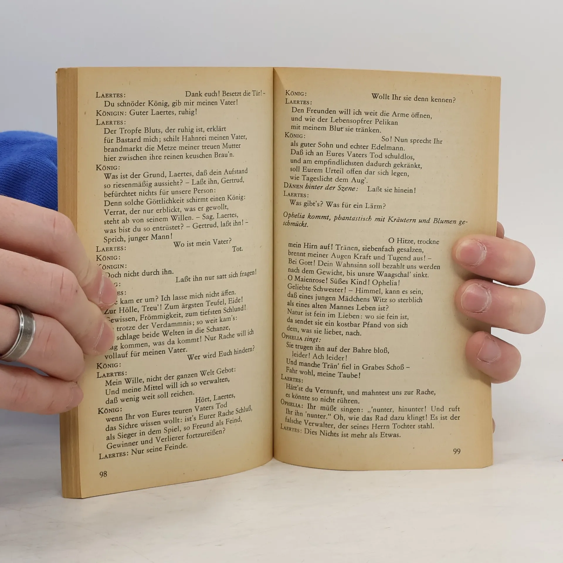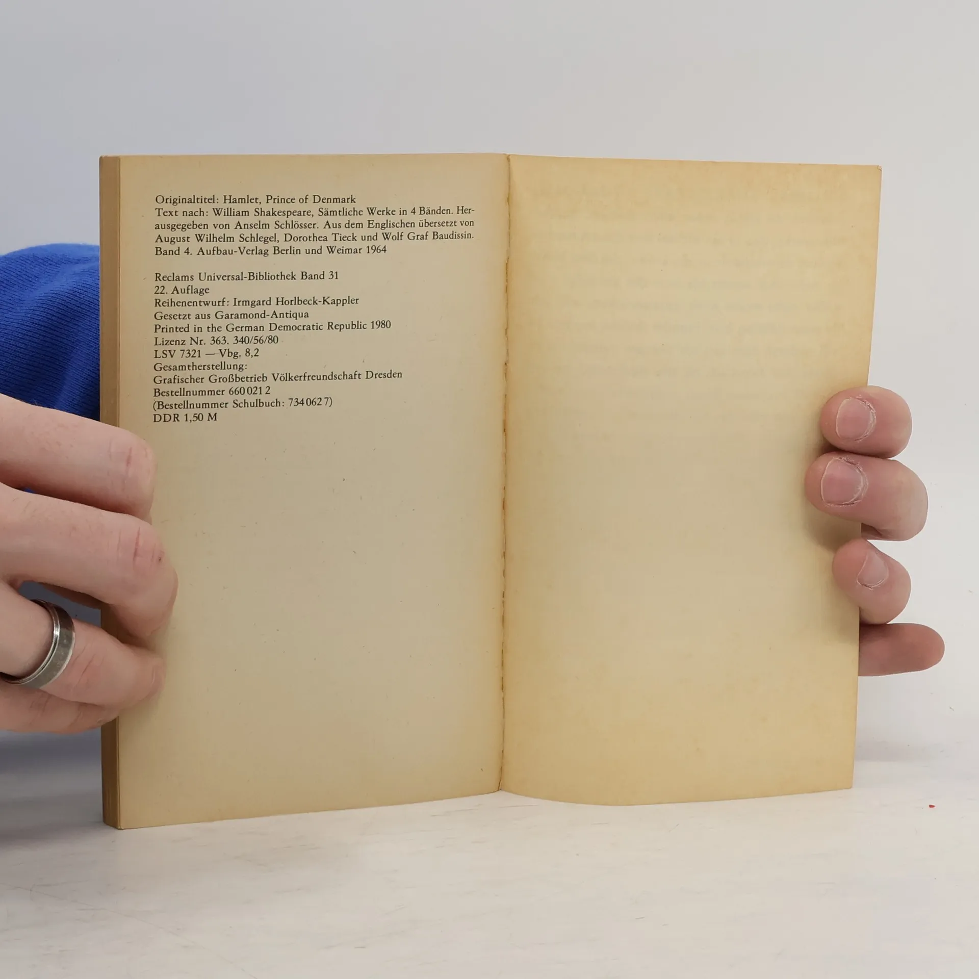 Dieses Drama um den dänischen Königssohn Hamlet gehört wohl zu den bekanntesten Dramen überhaupt. Hamlet ist zum Prototyp des Zauderers geworden, „dem der Intellekt die Tat zersetzt“. „Der Sprachkünstler und Sprachschöpfer Shakespeare scheint sich im Hamlet sein Ebenbild geschaffen zu haben. Denn wie keine andere Gestalt Shakespeares weiß Hamlet auf dem Instrument der Sprache wie auf einer Orgel mit mehreren Manualen und Registern zu spielen.“ Das Leseheft umfasst neben dem ungekürzten Text in der Übersetzung August Wilhelm von Schlegels (durchgängige Vers-/Zeilenzählung) ein Nachwort, einen Abschnitt zu Shakespeares Biografie, bibliografische Hinweise, Johann Wolfgang von Goethes Aufsatz “Shakespeare und kein Ende” sowie Anmerkungen bzw. Wort- und Sacherläuterungen.