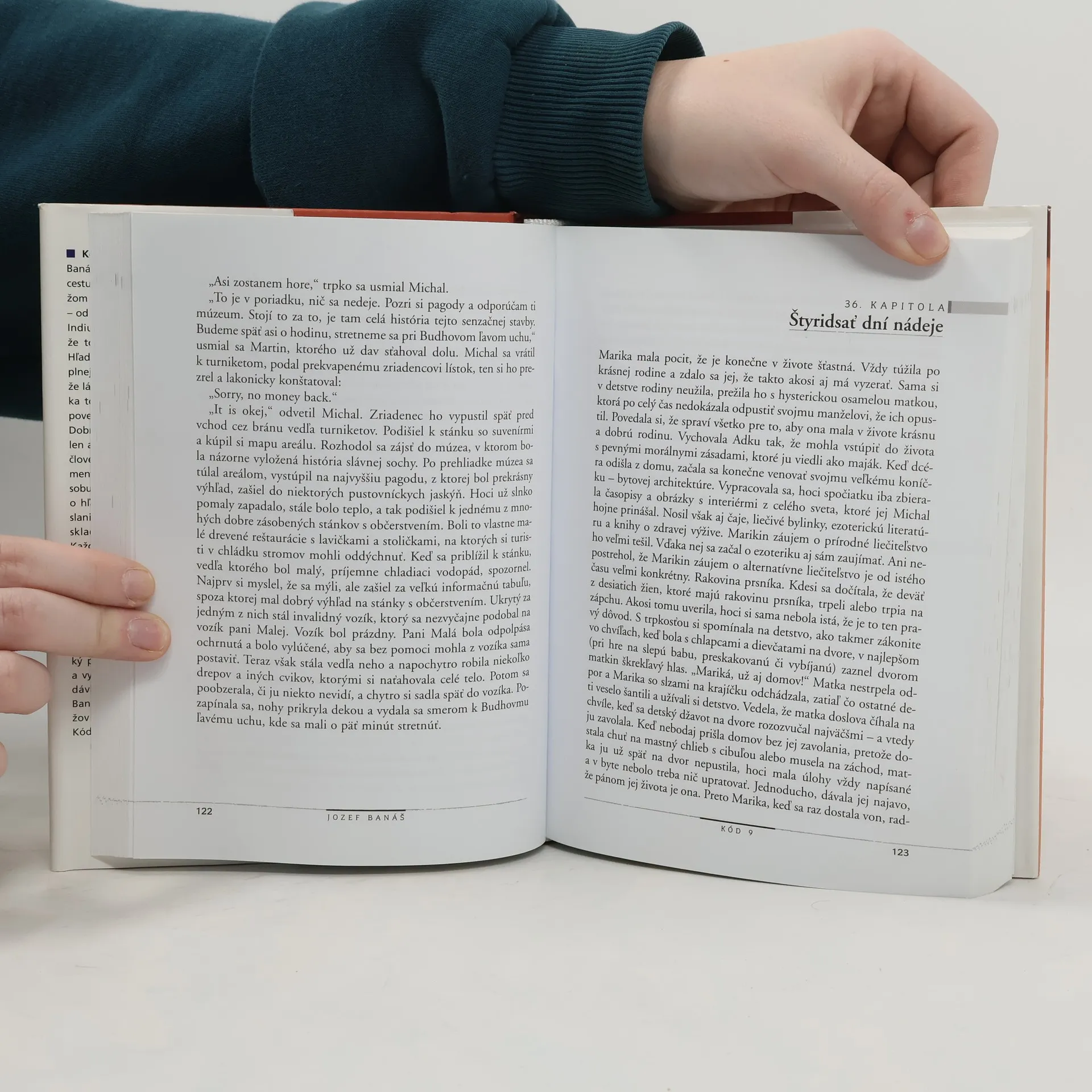Kód 9 vyvolá diskusiu. Banáš posiela svojho hrdinu Michala na cestu za hľadaním rovnováhy medzi mužom a ženou po atraktívnych destináciách – od staročínskeho Sianu cez Tibet, Nepál, Indiu až po Vatikán, aby nakoniec zistil, že tou najatraktívnejšou je jeho vnútro. Hľadá a nachádza – seba samého. Na ceste plnej napätia a krajných situácií pochopí, že láska a viera nie sú slová, ale činy. Vďaka tomu je schopný prijať bremeno zodpovednosti. Dobrodružstvo, ktoré zažijeme, neprináša len atmosféru exotiky, ale vedie do hĺbky človečenstva a jeho principiálnej komplementarity, teda mužského a ženského spôsobu ľudského bytia. Kód 9 je príbeh aj o hľadaní a objavovaní dôstojnosti a poslania ženy. Kniha, ktorú otvárate nie je skladba žalospevov, ani obviňujúci spis. Každá doba a každá kultúra má na svedomí hriechy, ktorými sa previňuje voči žene. Rovnako aj autorov pohľad na Ježiša a Cirkev je neortodoxný, jeho Ježiš nie je dogmatický, je symptómom vnútorných procesov hľadania, ktorým sa nevyhne žiadna generácia, žiaden jednotlivec. Doba, ktorú žijeme si priam vyžaduje veľký príbeh. Do takého nás autor vťahuje a využíva to, čo je dnes chytľavé – silnú dávku mysticizmu. Ďakujem Jozefovi Banášovi, že svojim príbehom nás – mužov odhaľuje a približuje samých sebe. Kód 9 nepochybne vyvolá diskusiu.