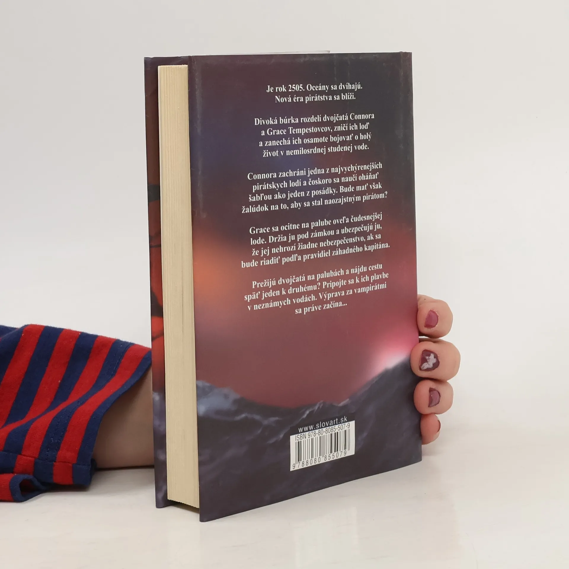 1. diel vampirátskej série Dvojčatá Grace a Connor majú štrnásť rokov. Prišli o otca aj o domov a majú už len jeden druhého. Keď ich však rozdelí búrka, ktorá potopí ich loď, začne sa veľké dobrodružstvo. Šikovný športovec Connor sa stane členom veselej, na všetko odhodlanej a nebezpečnej pirátskej partie. Bystrá a odvážna Grace sa ocitne na palube inej lode. Sama, uväznená v kajute a obklopená tajomnými členmi posádky, postupne odhaľuje mrazivé tajomstvo: je medzi pirátmi, ktorým nejde o zlato ani poklady. Chcú to jediné, čo ich celé stáročia drží pri živote – ľudskú krv.