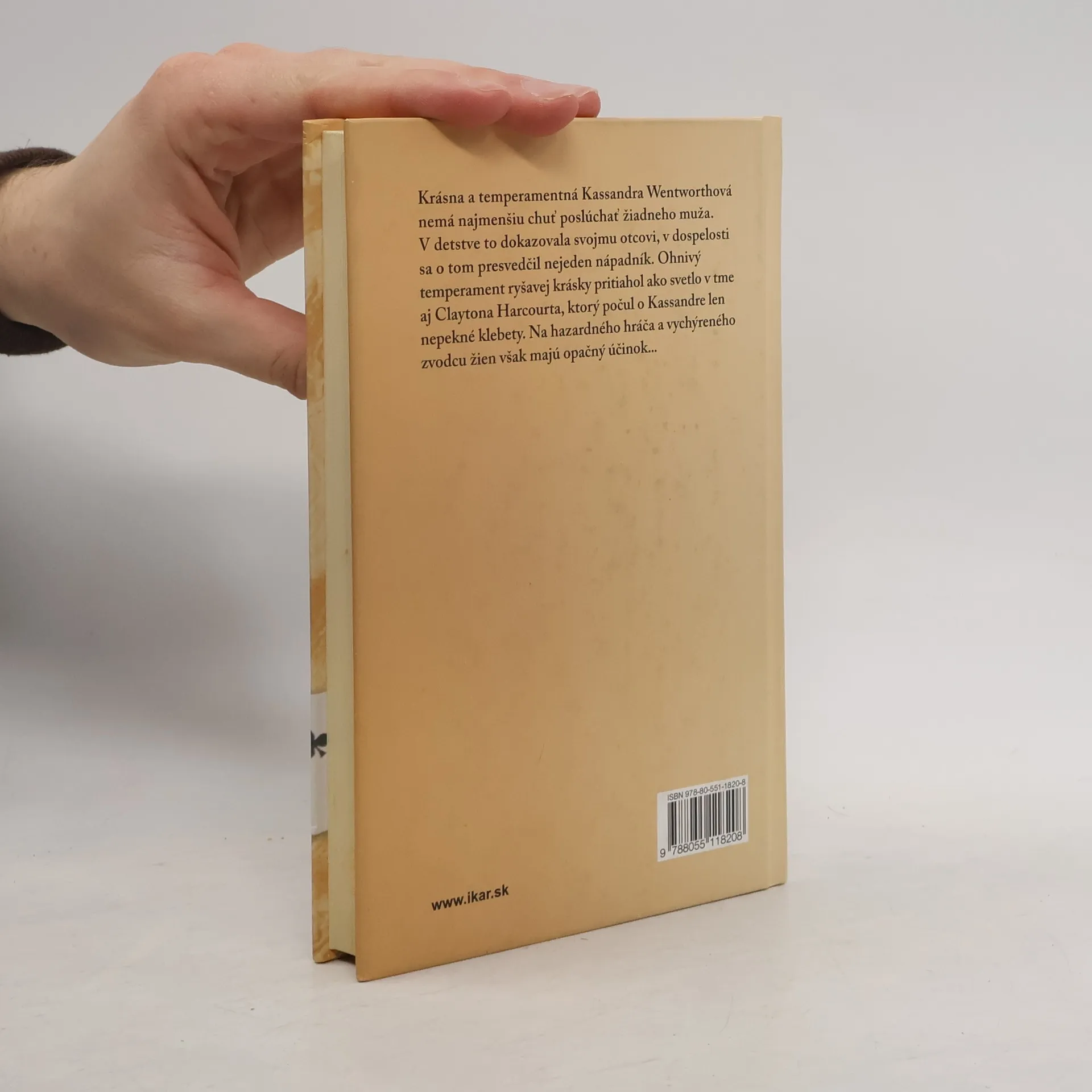 Krásna a temperamentná Kassandra Wentworthová nemá najmenšiu chuť poslúchať žiadneho muža. V detstve to dokazovala svojmu otcovi, v dospelosti sa o tom presvedčil nejeden nápadník. Ohnivý temperament ryšavej krásky pritiahol ako svetlo v tme aj Claytona Harcourta, ktorý počul o Kassandre len nepekné klebety. Na hazardného hráča a vychýreného zvodcu žien však majú opačný účinok...