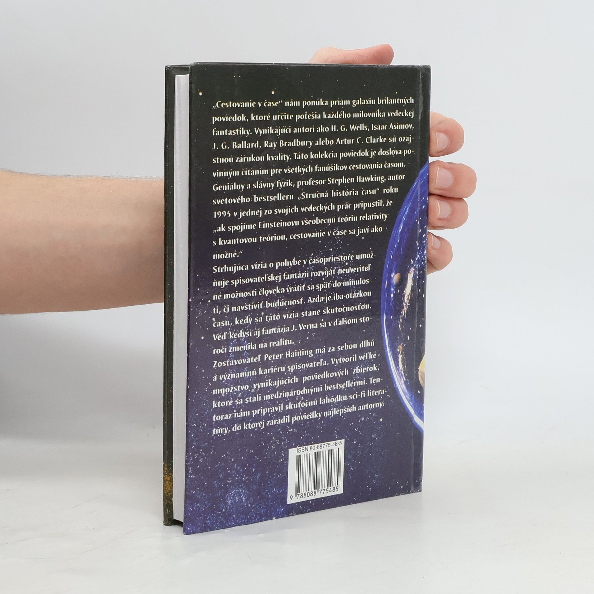 „Cestovanie v čase“ nám ponúka priam galaxiu brilantných poviedok, ktoré určite potešia každého milovníka vedeckej fantastiky. Vynikajúci autori ako H. G. Wells, Isaac Asimov, J. G. Ballard, Ray Bradbury alebo Artur C. Clarke sú ozajstnou zárukou kvality. Táto kolekcia poviedok je doslova povinným čítaním pre všetkých fanúšikov cestovania časom. Geniálny a slávny fyzik, profesor Stephen Hawking, autor svetového bestselleru „Stručná história času“ roku 1995 v jednej zo svojich vedeckých prác pripustil, že „ak spojíme Einsteinovu všeobecnú teóriu relativity s kvantovou teóriou, cestovanie v čase sa javí ako možné.“ Strhujúca vízia o pohybe v časopriestore umožňuje spisovateľskej fantázii rozvíjať neuveriteľné možnosti človeka vrátiť sa späť do minulosti, či navštíviť budúcnosť. Azda je iba otázkou času, kedy sa táto vízia stane skutočnosťou. Veď kedysi aj fantázia J. Verna a v ďalšom storočí zmenila na realitu. Zostavovateľ Perer Hainting má za sebou dlhú a významnú kariéru spisovateľa. Vytvoril veľké množstvo vynikajúcich poviedkových zbierok, ktoré sa stali medzinárodnými bestsellermi. Tentoraz nám pripravil skutočnú lahôdku sci-fi literatúry, do ktorej zaradil poviedky najlepších autorov.