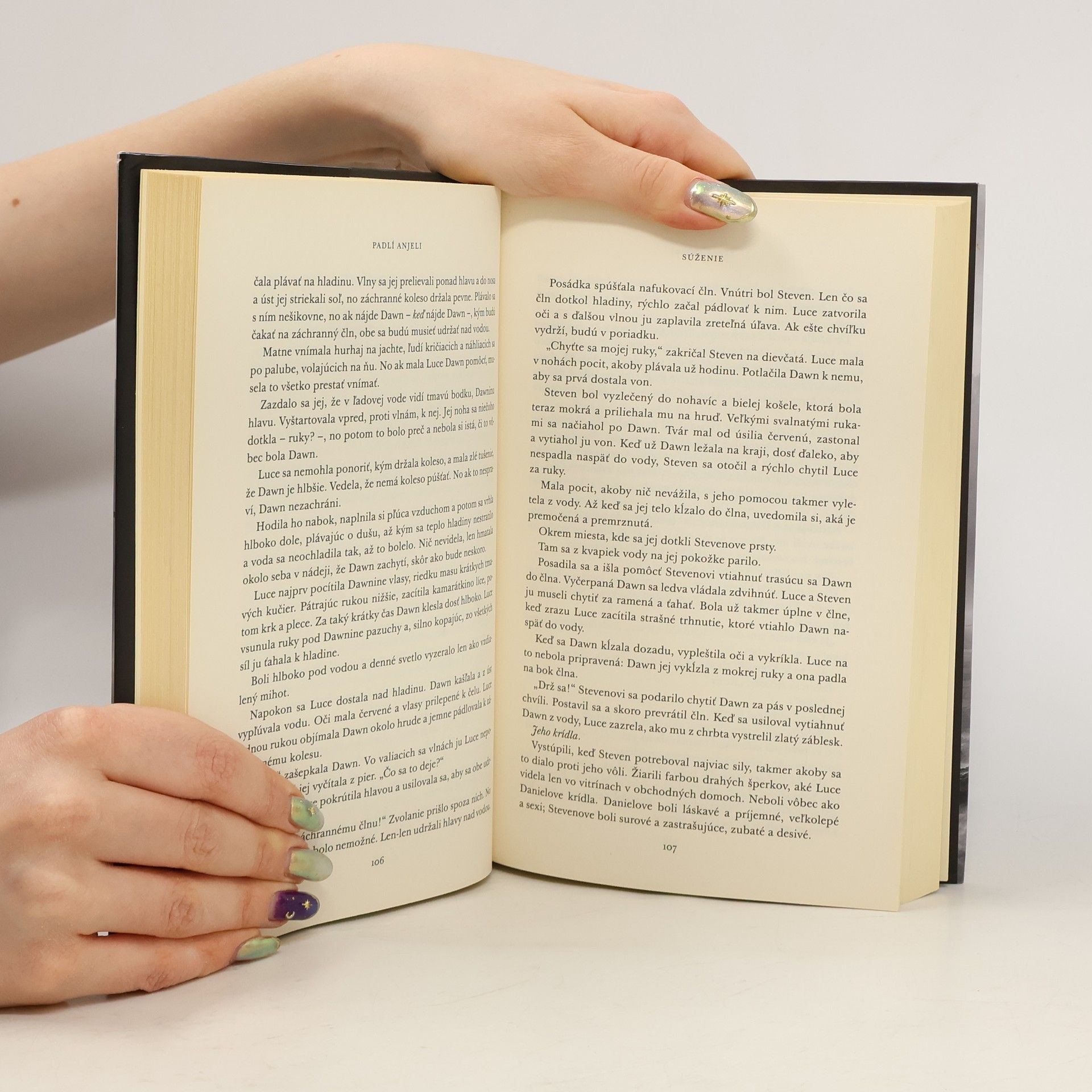 Peklo na zemi. To prežíva Luce, keď nemôže byť so svojím padlým anjelom Danielom. Trvalo večnosť, kým sa znova našli, a on jej teraz vraví, že musí odísť. Len na tak dlho, kým nechytí Vyhnancov – nesmrteľných, čo ju chcú zabiť. Daniel ukryje Luce na Shoreline, škole, ktorá sa nachádza na skalnatom kalifornskom pobreží a navštevujú ju nezvyčajne nadaní študenti – nefilimovia, potomkovia padlých anjelov a ľudí. Tu sa Luce dozvie, čo sú tiene a ako s ich pomocou môže nazrieť do svojich minulých životov. No čím viac sa Luce dozvedá, tým väčšmi podozrieva Daniela, že jej neprezradil všetko. Čosi skrýva – čosi nebezpečné. Čo ak nie je pravda to, čo jej Daniel povedal o minulosti? Čo ak je Luce v skutočnosti súdené byť s niekým iným?