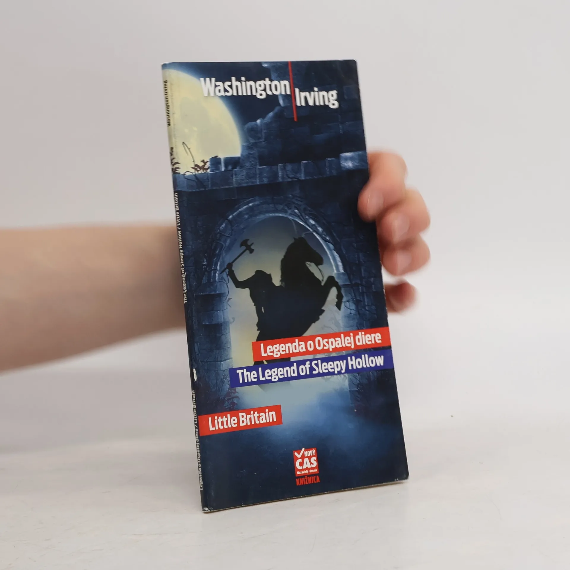 Druhá seria - kniha č. 3 Dvojjazyčná kniha - denník Nový Čas První povídka od známého spisovatele Washingtona Irvinga je ve zjednodušené verzi doplněna českým překladem. Dej hororovej poviedky sa odohráva na konci 18. storočia v Bohom zabudnutej dedine Ospalá diera. Sem prichádza mladý constable Ichabod Crane, aby vyšetril sériu neobjasnených vrážd. Miestni pripisusujú úmrtia bezhlavému jazdcovi, pretože všetky obete mali odťaté hlavy. Druhá povídka "Little Britain" popisuje malou čtvrť, která leží v centru Londýna. Washington Irving popsal tento okres v náčrtku knize Geoffrey Crayon, Gent., Publikoval v roce 1820. Oba príbehy sú zverejnené dvojjazyčne. Nový Čas tak svojim čitateľom prináša možnosť zároveň sa zdokonaľovať v anglickom jazyku. Podľa odborníkov sú dvojjazyčné knihy výbornou pomôckou pri zdokonaľovaní sa v cudzom jazyku. „Je vždy plus, ak sa študent môže učiť na niečom, čo ho zaujíma a baví, či už je to text piesne, titulky k obľúbenému filmu alebo práve kniha, kde môže získať množstvo novej slovnej zásoby a slovných zvratov. Čitatelia Nového Času tak môžu zvýšiť úroveň čitanosti kníh na Slovensku. Pričom podľa prieskumov verejnej mienky Eurobarometra až 68 % Slovákov číta knihy. Počet kníh, ktoré pod hlavičkou Nový Čas Knižnica vyjdú, bude závisieť od záujmu čitateľov Nového Času.