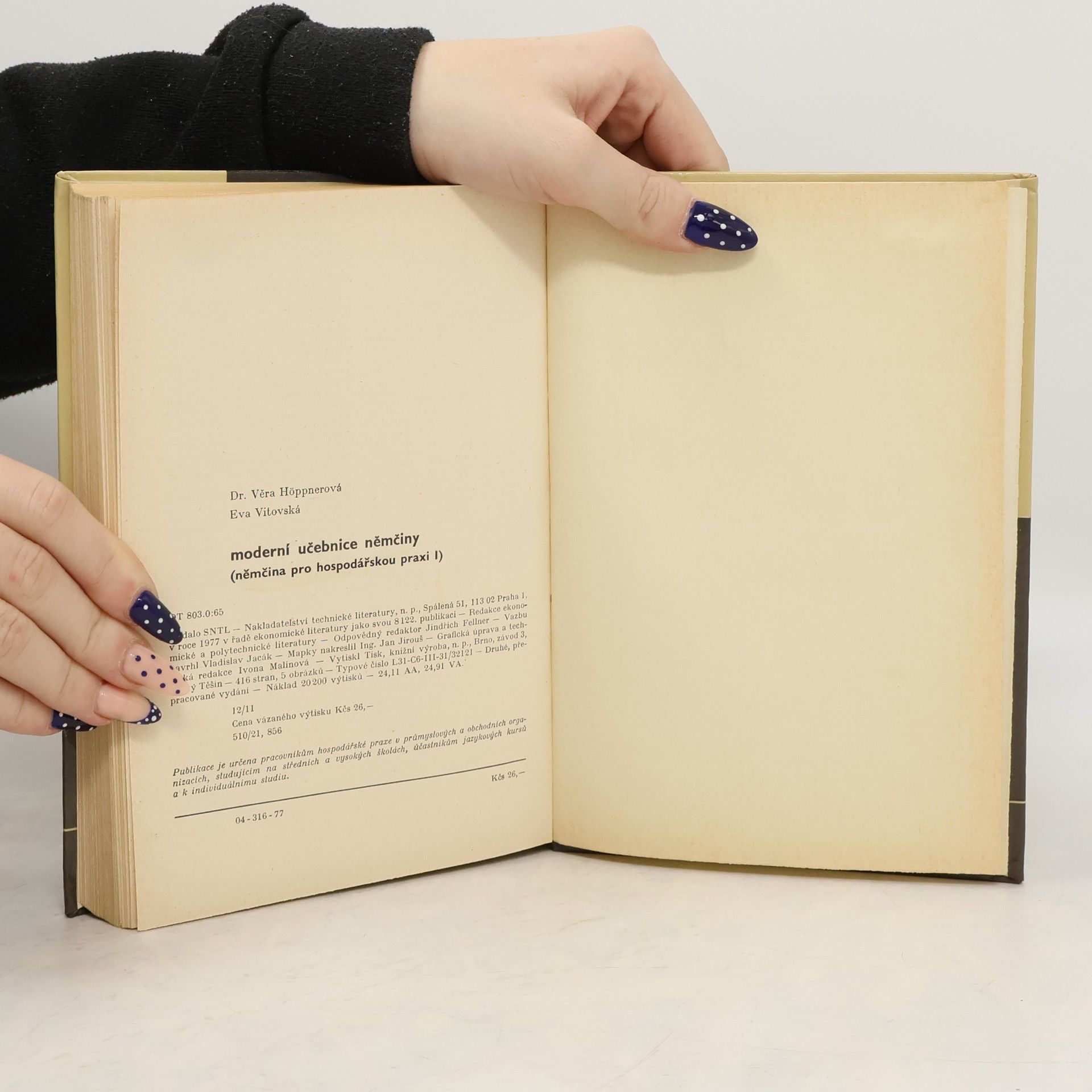 Učebnice němčiny schválena r. 1984 jako celostátní vysokoškolská učebnice studentů Vysoké školy ekonomické. Spoluautorka: Eva Vitovská. Páté, přepracované vydání.
