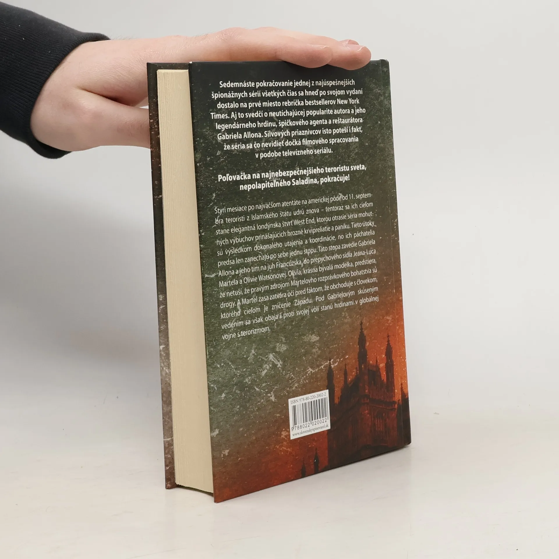 Sedemnásta kniha jednej z najúspešnejších špionážnych sérií všetkých čias o legendárnom Gabrielovi Allonovi. Štyri mesiace po atentáte na americkej pôde teroristi z Islamského štátu udrú znova – tentoraz sa ich cieľom stane elegantná londýnska štvrť West End, ktorou otrasie séria mohutných výbuchov. Tieto útoky sú výsledkom dokonalého utajenia, no ich páchatelia predsa len zanechajú po sebe jednu stopu. Táto stopa zavedie Gabriela a jeho tím na juh Francúzska, do prepychového sídla Jeana-Luca Martela a Olivie Watsonovej. Bývalá modelka Olivia predstiera, že netuší, že pravým zdrojom Martelovho rozprávkového bohatstva sú drogy. A Martel zasa zatvára oči pred faktom, že obchoduje s človekom, ktorého cieľom je zničenie Západu. Pod Gabrielovým skúseným vedením sa však obaja stanú hrdinami v globálnej vojne s terorizmom.
