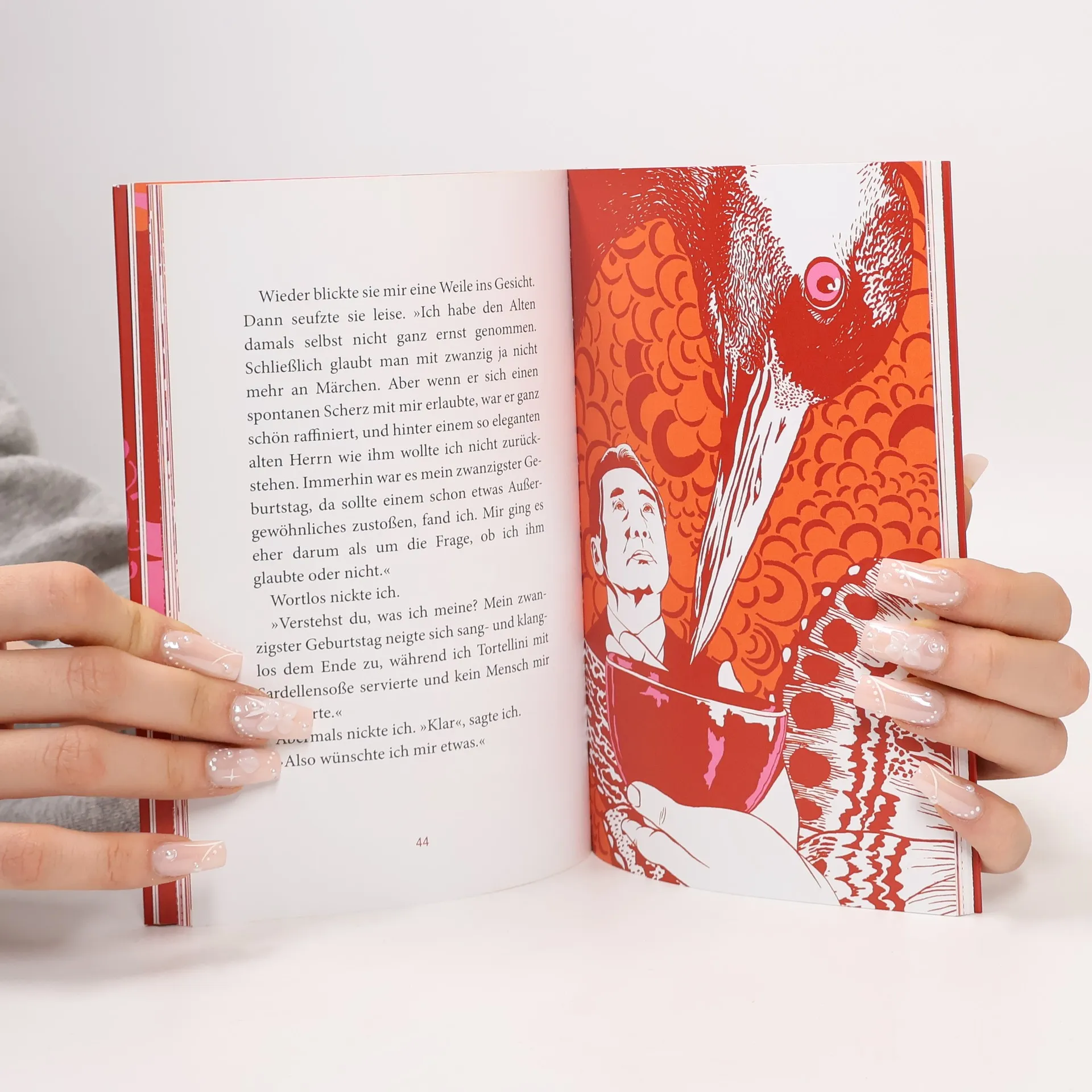 Eine junge Kellnerin wird zwanzig. Doch ihren Geburtstag verbringt sie nicht mit ihren Freunden; sie arbeitet. Ihr Chef, der Geschäftsführer des Restaurants, übergibt ihr eine wichtige Aufgabe. Sie muss pünktlich um zwanzig Uhr dem Inhaber des Lokals das Abendessen in dessen Suite bringen. Noch nie haben sie oder ihre Kollegen den Besitzer gesehen. Pünktlich um zwanzig Uhr steht sie vor der Suite. Es öffnet ihr ein zierlicher älterer Mann, der sie, anders als ihr Chef es ankündigte, in die Suite und um ihre Gesellschaft bittet. Auch ist der Herr, denn er ist eindeutig ein Herr, von ausgesuchter Höflichkeit. Die junge Frau ist verunsichert und verwundert über ihn. Trotzdem erzählt sie ihm irgendwann, dass sie Geburtstag hat. Woraufhin ihr der Mann ein Geschenk machen will. Er lässt sie wissen, dass sie einen Wunsch äußern dürfe, sich diesen aber sehr genau überlegen solle, denn sie könne ihn, einmal ausgesprochen, nicht mehr zurücknehmen. Und er eröffnet ihr, dass er ihren Wunsch tatsächlich erfüllen könne, ganz gleich, was es sei. Mit Illustrationen von Kat Menschik.