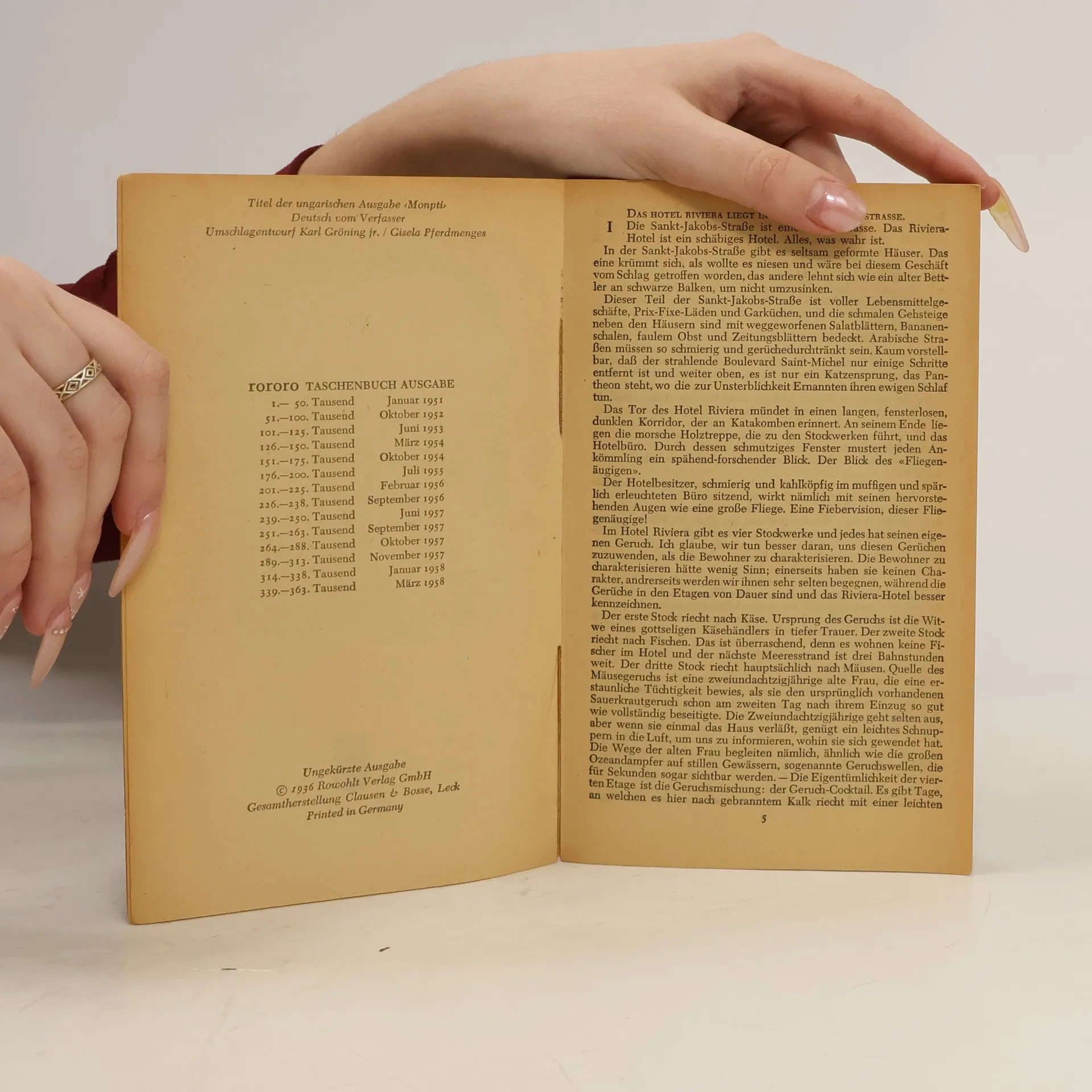 Monpti ist der Kosename, den die kleine Pariserin Anne-Claire dem jungen ungarischen Studenten gibt, dem sie auf rührende Weise anhängt und der sie auch mit ihren kleinen Lügen und ihrer reinen Seele glühend liebt. Monpti ist dem Zauber der Seinestadt erlegen, trotz seiner ergreifenden Bohème- Mittellosigkeit. Noch mehr jedoch dem Zauber jener blutjungen Frau, die er eines Tages im Park trifft und deren Bild ihn von nun an nicht mehr losläßt. Mitten im tosenden Paris, im Laternenschein der kleinen Gassen und der großen Boulevards blüht das Wunder zwischen zwei großen Kindern auf, und wir erleben alles, was die Liebe ausmacht: kleinen Streit, unsinnige Probleme, Szenen der Eifersucht, innige Versöhnung. Es ist die Welt der Verliebten, wie sie gerade in Paris aufs schönste erblühen kann. Doch Anne-Claire hat ein Geheimnis: Sie läßt sich nie nach Hause begleiten und spielt ihrem Monpti vor, sie sei ein Mädchen aus reichem Haus. Dabei ist sie so arm wie ihr Geliebter, der erst im letzten Moment, als alles zu spät scheint, ihren hilflosen Versuchen, ihm zu imponieren, auf die Spur kommt. Das alles ist von hinreißendem Schwung, anmutig, voller Witz und Geist, voller Humor und leiser Trauer und damit so reizvoll und kühn, daß es wie das erlebte Paris die Leserinnen und Leser mitten ins Herz trifft.