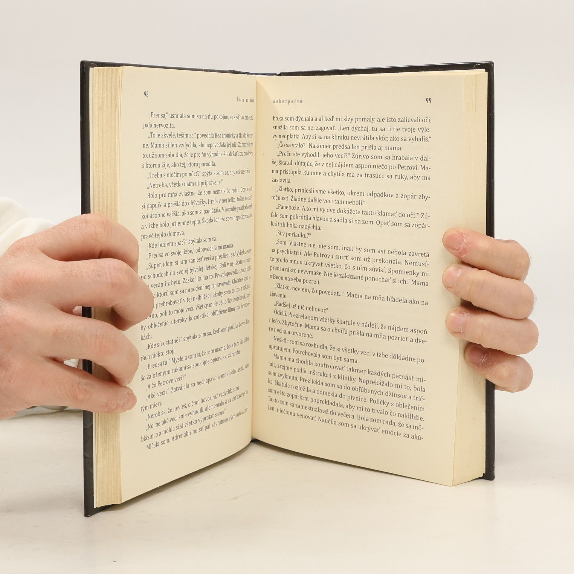 Po čom ženy túžia? A čo sú ochotné pre svoje túžby urobiť? Hlavná hrdinka románu Nebezpečná od Lucie Saskovej, autorky bestselleru Zlatokopka, chce jediné: byť normálna. Mať normálny vzťah, niekoho milovať, byť šťastná. Veci sa však vyvíjajú inak, ako si predstavovala. Zrazu je pre ňu ťažké normálne fungovať, vyznať sa vo vlastných spomienkach, stáť si za svojimi činmi. Je totiž nebezpečná. Pre seba aj pre svoje okolie.