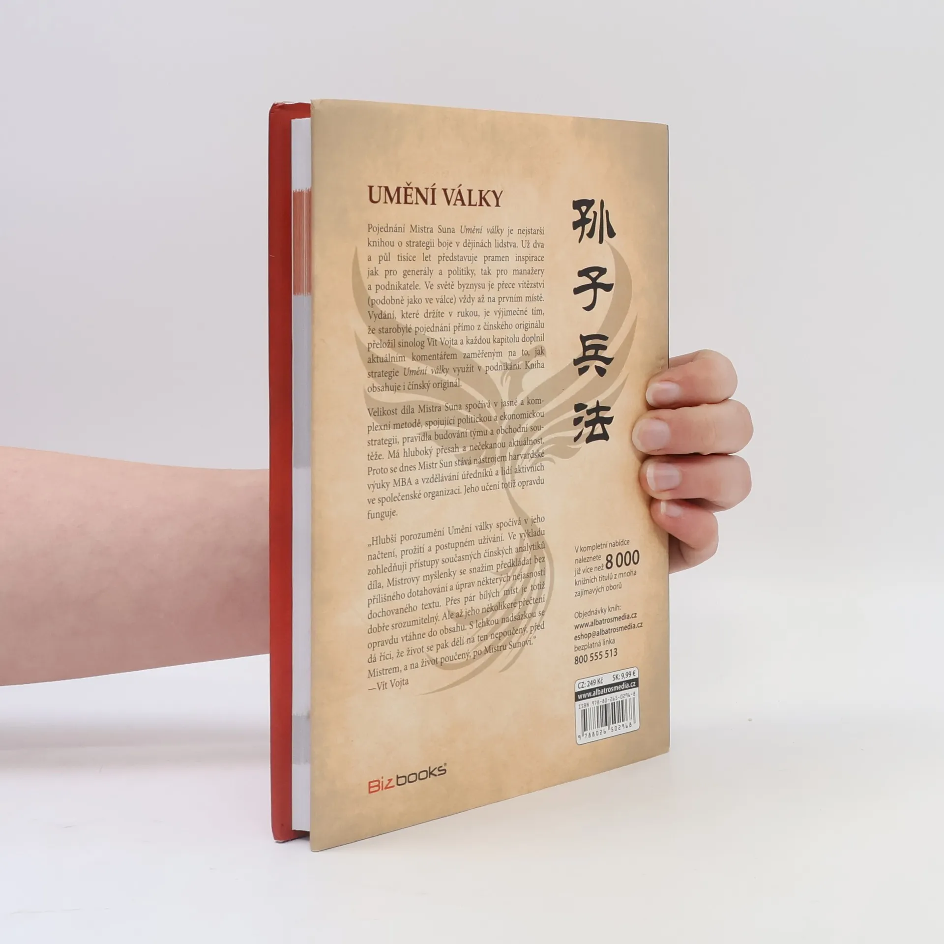 Pojednání Mistra Suna Umění války je nejstarší knihou o strategii boje v dějinách lidstva. Už dva a půl tisíce let představuje pramen inspirace jak pro generály a politiky, tak pro manažery a podnikatele. Ve světě byznysu je přece vítězství (podobně jako ve válce) vždy až na prvním místě. Vydání, které držíte v rukou, je výjimečné tím, že starobylé pojednání přímo z čínského originálu přeložil sinolog Vít Vojta a každou kapitolu doplnil aktuálním komentářem zaměřeným na to, jak strategie Umění války využít v podnikání. Kniha obsahuje i čínský originál.