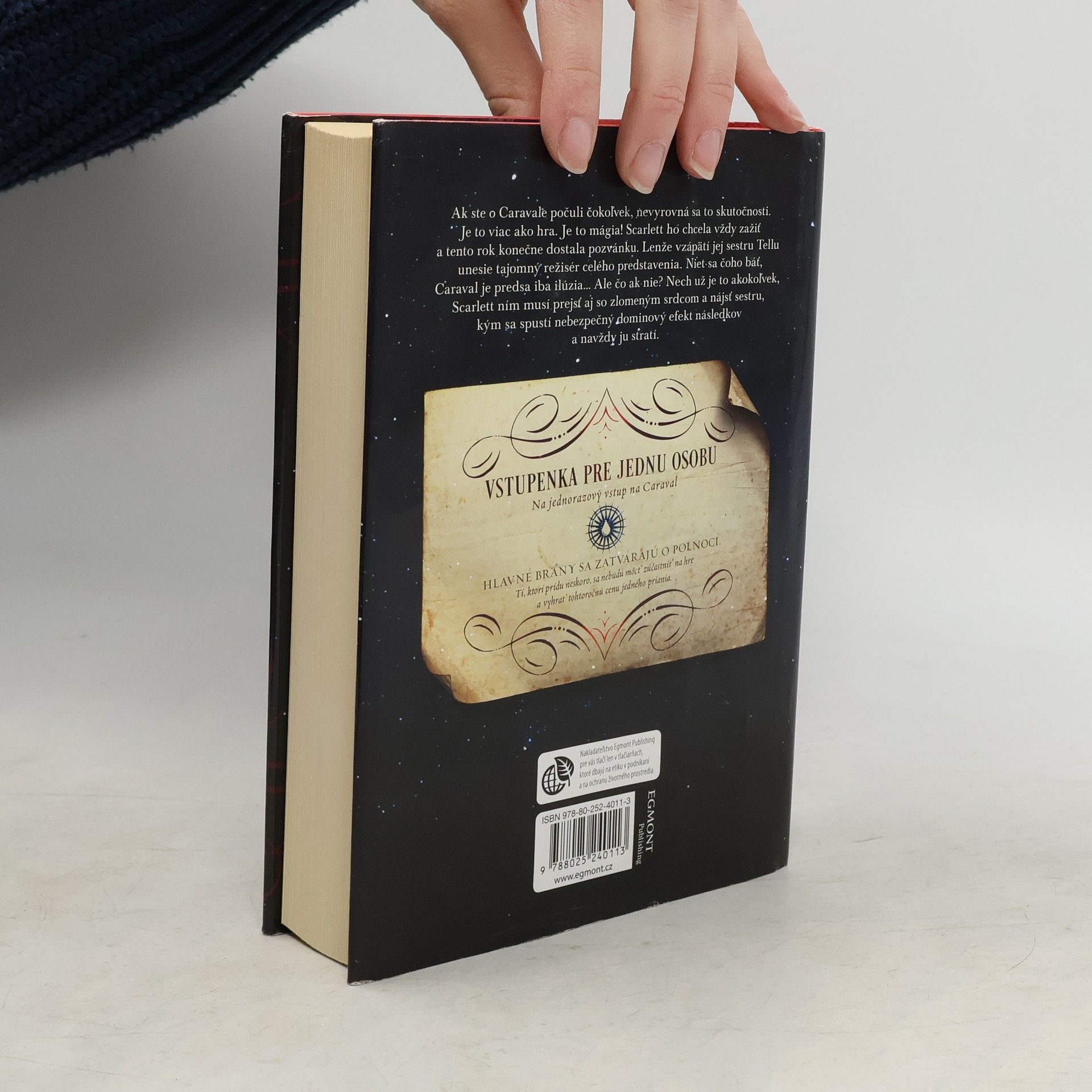 Než vstúpite do sveta Caravalu, majte na pamäti, že je to len hra. Či už ste o Caravalu počuli čokoľvek, určite sa to nevyrovná realite. Je to viac než hra! Je to mágia. Scarlett vždy túžila Caraval zažiť a tento rok dostala pozvánku. Lenže vzápätí unesie jej sestru Tello tajomný režisér celého predstavenia. Niet sa čoho báť, Caraval je predsa len zdanie. Ale čo ak nie? Nech už je to akokoľvek, Caravalem musí Scarlett prejsť aj so zlomeným srdcom a sestru rýchlo nájsť, než sa spustí nebezpečný dominový efekt následkov a navždy ju stratí.