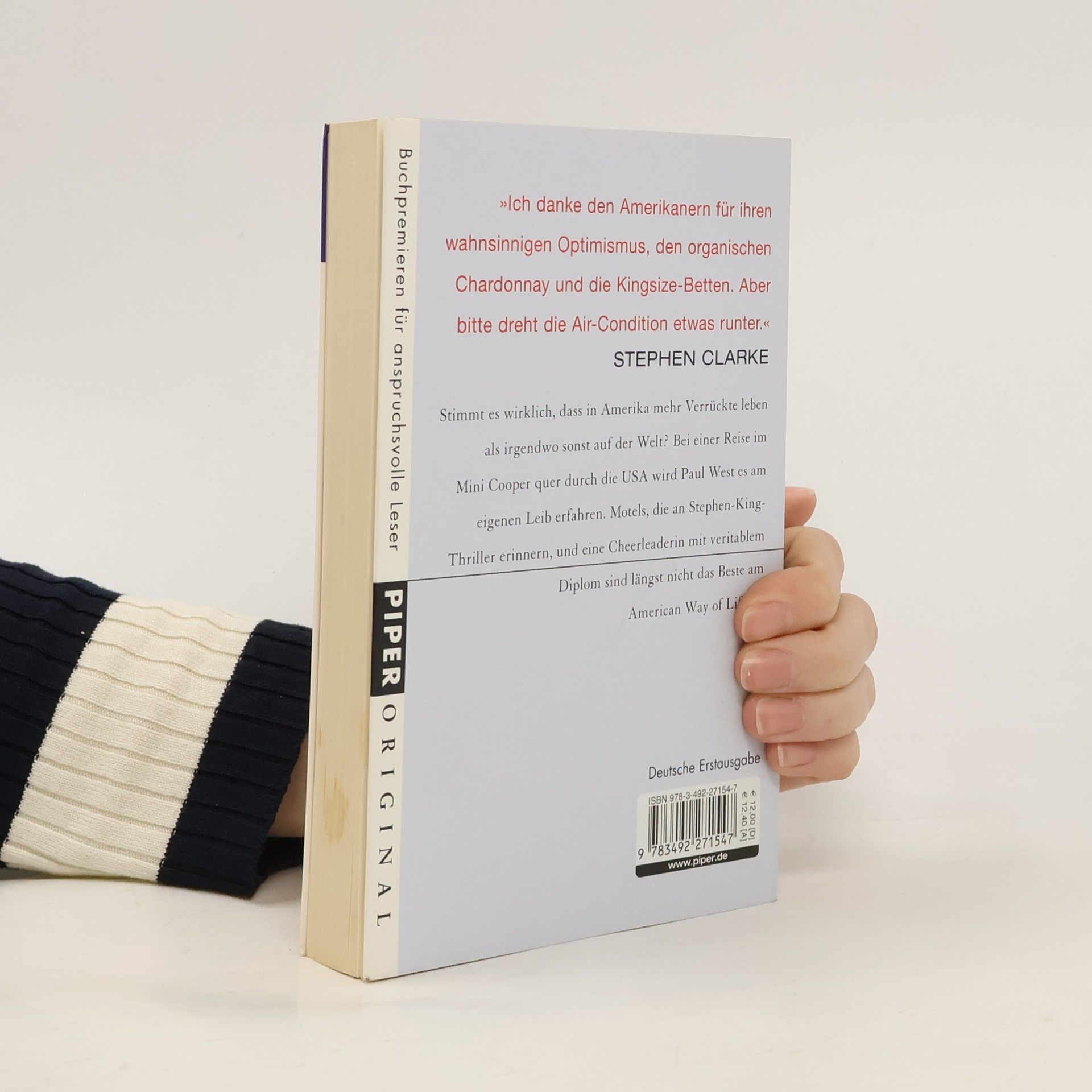 Nach seinen bitterbösen Liebeserklärungen an die Franzosen untersucht Stephen Clarke nun, ob es wirklich stimmt, dass in Amerika mehr Verrückte als irgendwo sonst auf der Welt leben. Er schickt sein Alter Ego Paul West im Minicooper quer durch die Vereinigten Staaten. Nach Jahren im leicht ignoranten Frankreich genießt Paul, dass jedem die Tür geöffnet wird und sich alle für seinen Vornamen interessieren. Motels, die an Stephen-King-Thriller erinnern, oder eine Cheerleaderin mit Diplom sind längst nicht das Beste am amerikanischen Way of life. Und was mit Political Correctness gemeint sein könnte, dämmert ihm spätestens, als es ihn an einen Schießstand mit Bin-Laden-Dummys verschlägt und er beim Nacktbaden erwischt wird. Have a nice read!