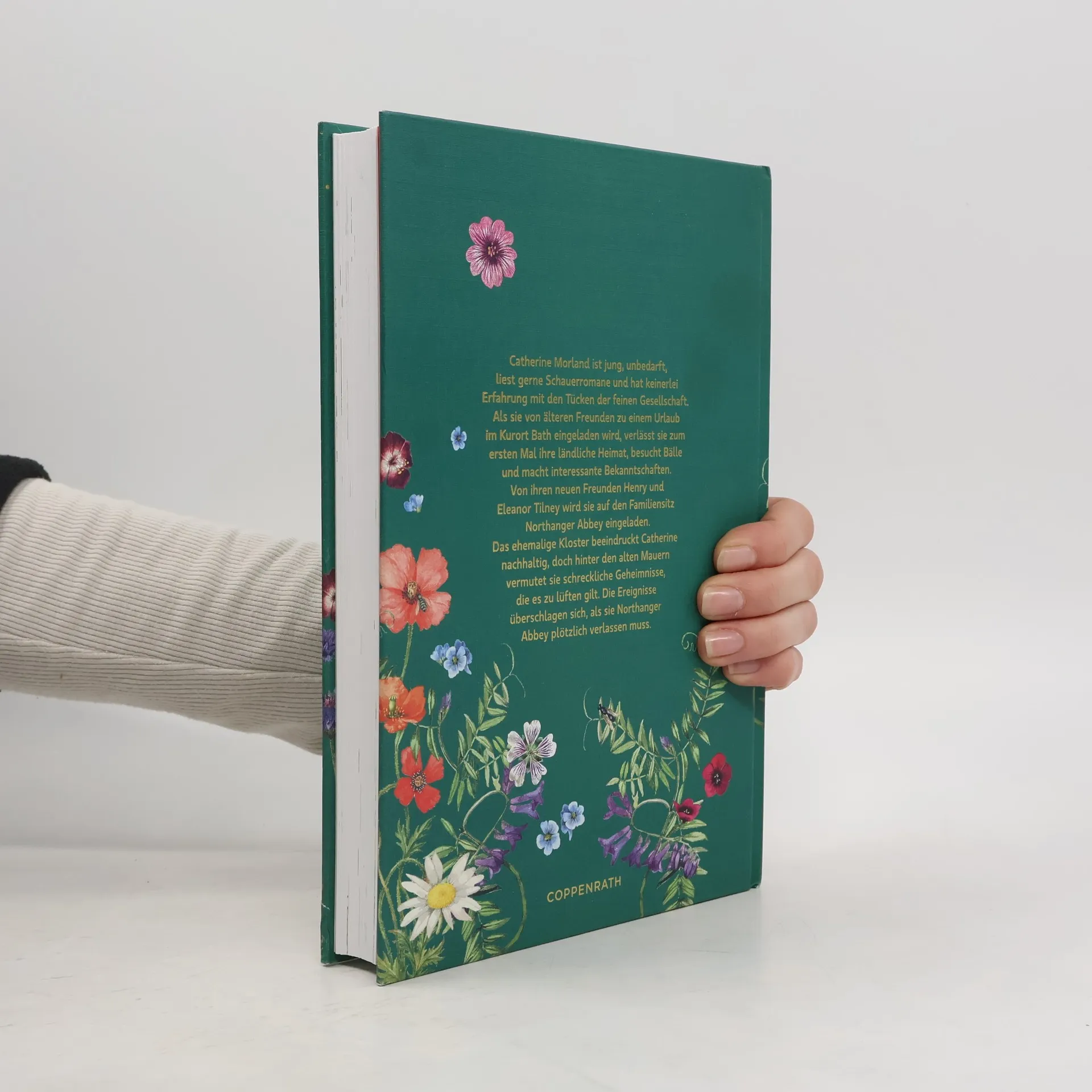 Catherine Morland ist jung, unbedarft, liest gerne Schauerromane und hat keinerlei Erfahrung mit den Tücken der feinen Gesellschaft. Als sie von älteren Freunden zu einem Urlaub im Kurort Bath eingeladen wird, verlässt sie zum ersten Mal ihre ländliche Heimat, besucht Bälle und macht interessante Bekanntschaften. Von ihren neuen Freunden Henry und Eleanor Tilney wird sie auf den Familiensitz Northanger Abbey eingeladen. Das ehemalige Kloster beeindruckt Catherine nachhaltig, doch hinter den alten Mauern vermutet sie schreckliche Geheimnisse, die es zu lüften gilt. Die Ereignisse überschlagen sich, als sie Northanger Abbey plötzlich verlassen muss. Reich veredelt, zauberhaft illustriert und mit 10 aufwendig gestalteten Extras versehen, nimmt diese einzigartige Schmuckausgabe des Klassikers von Jane Austen die Lesenden mit in vergangene Zeiten. Ein weiterer Titel in der Bestseller-Reihe von Coppenrath, der in keiner Sammlung fehlen darf!