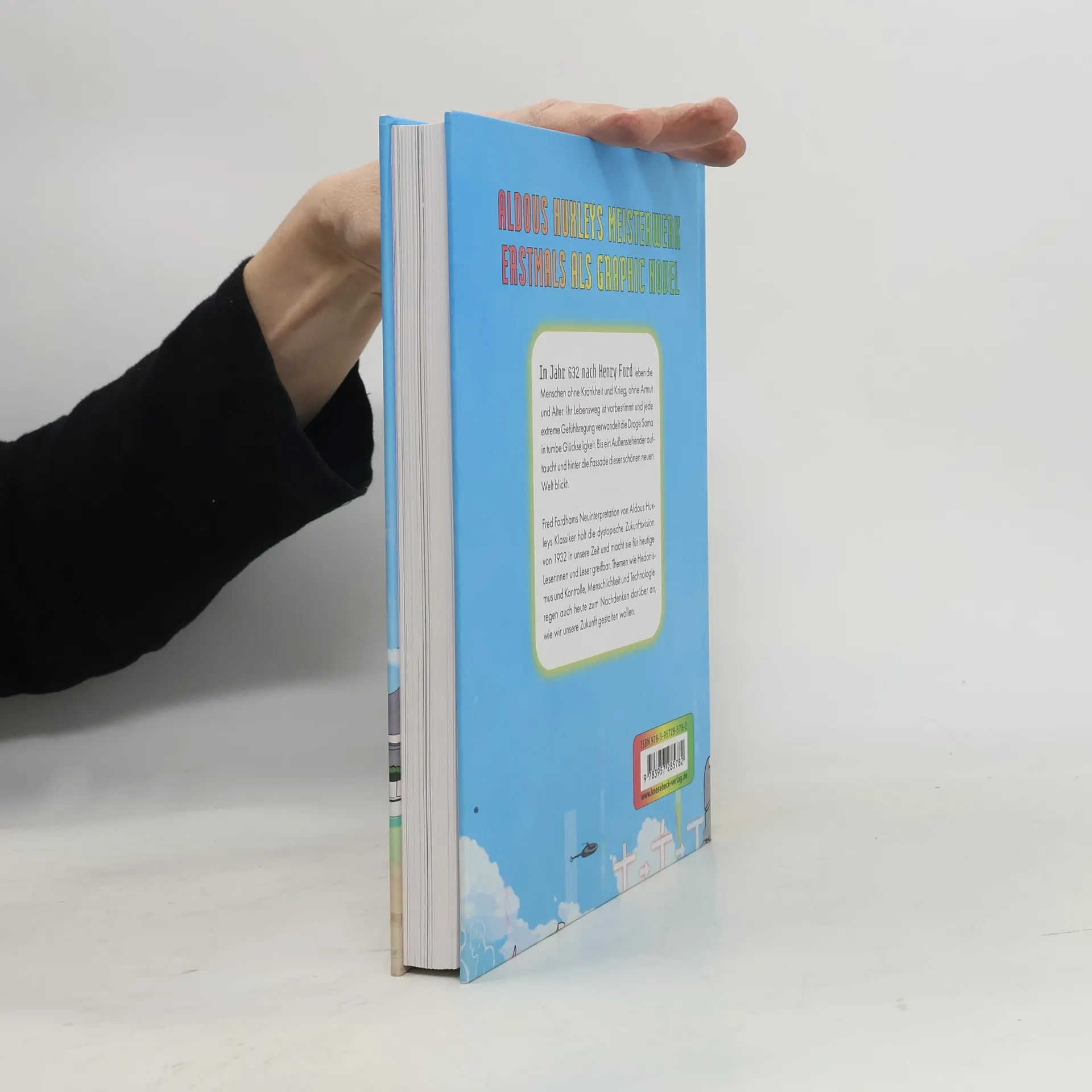 Aldous Huxleys dystopische Brave new World erstmals als Graphic Novel Wir schreiben das Jahr 632 nach Henry Ford. Den Menschen ist es gelungen, eine Gesellschaft ohne Krankheit, Krieg, Armut und Alter zu schaffen. Ihr Lebensweg ist vorbestimmt und jedes extreme Gefühl, aber auch jeder kritische Gedanke, wird von der Droge Soma in Glückseligkeit verwandelt. Bis ein Außenstehender auftaucht und hinter die Fassade dieser scheinbar schönen Welt blickt. Diese Graphic Novel hüllt Aldous Huxleys prophetische Dystopie von 1932 in ein neues Gewand und zeigt, dass die einst absurde Zukunftsvision heute beinahe schon real ist und Themen wie der Einsatz von Technologie zur gesellschaftlichen Kontrolle, Konsum als Bedürfnisbefriedigung und staatliche Überwachung heute aktueller denn je sind.
