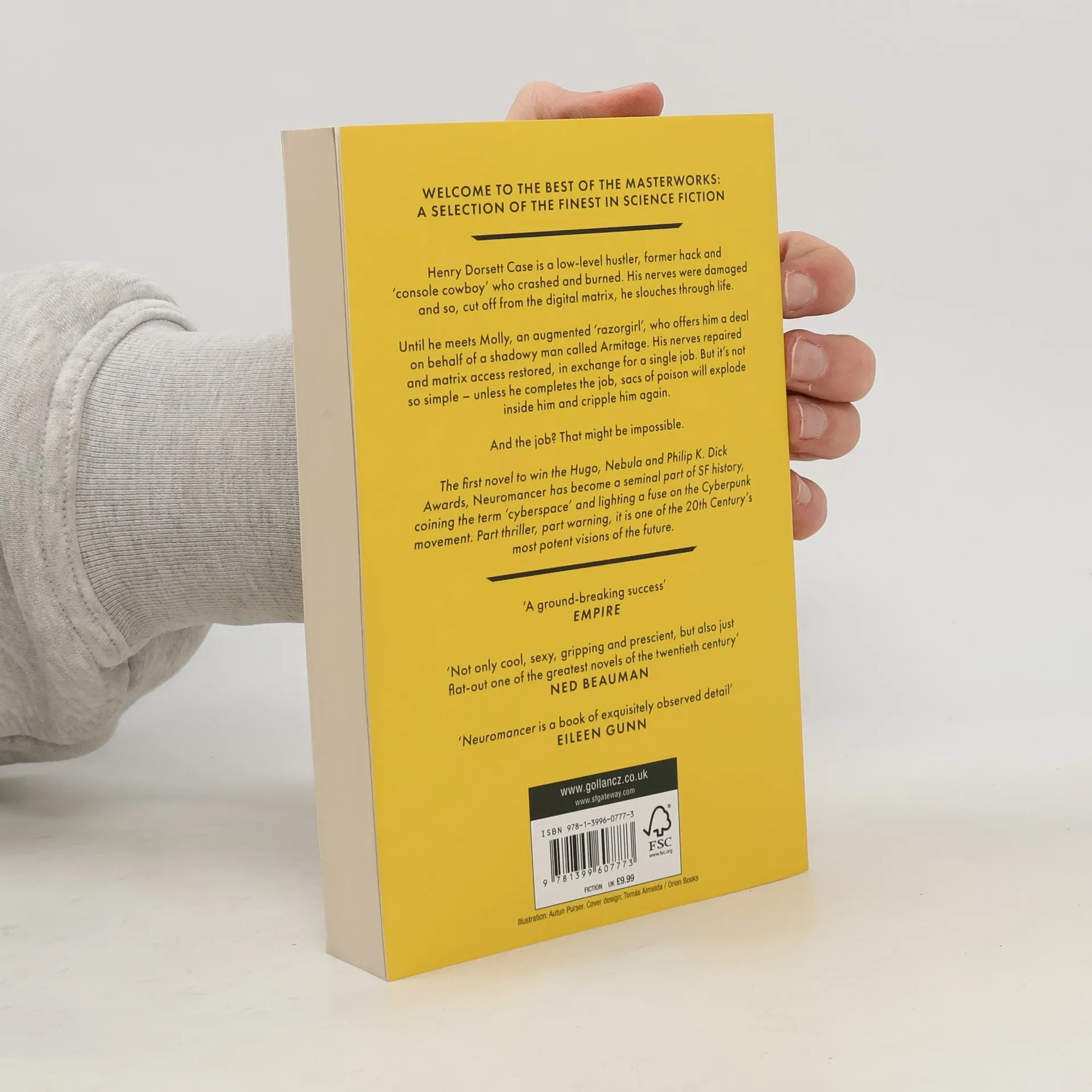 Henry Dorsett Case is a low-level hustler, former hack and 'console cowboy' who crashed and burned. His nerves were damaged and thus cut off from the digital matrix, he slouches through life. Until he meets Molly, an augmented 'razorgirl', who offers him a deal on behalf of a shadowy man called Armitage. His nerves repaired and matrix access restored, in exchange for a single job. But it's not so simple - unless he completes the job, sacs of poison will explode inside him and cripple him again. And the job? That might be impossible. The first novel to win the Hugo, Nebula and Philip K. Dick Awards, Neuromancer has become a seminal part of SF history, coining the term 'cyberspace' and lighting a fuse on the Cyberpunk movement. Part thriller, part warning, it is one of the 20th century's most potent visions of the future. 'A ground-breaking success' - Empire 'Gibson is better than almost anybody at noticing what's genuinely interesting about the world' - Ned Beauman 'Neuromancer is a book of exquisitely observed detail' - Eileen Gunn Welcome to The Best Of The Masterworks: a selection of the finest in science fiction