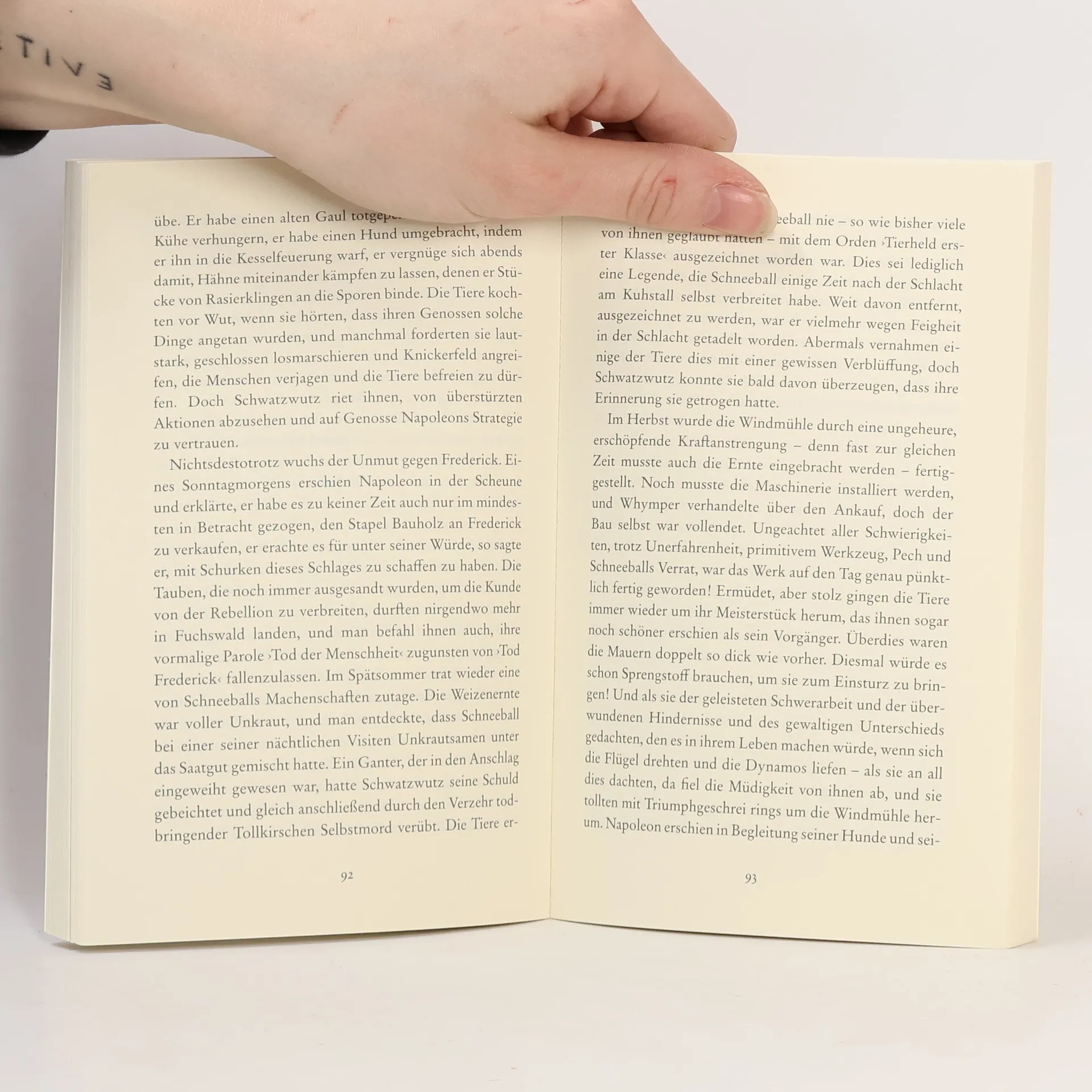 »Die Fabel vom Aufstand der Tiere des Farmers Jones und vom allmählichen Umschlag der Revolution in ihr den status quo ante wiederherstellendes Gegenteil gehört zu den bekanntesten literarischen Werken des 20. Jahrhunderts. Der Satz Alle Tiere sind gleich, aber einige Tiere sind gleicher als andere wurde zum geflügelten Wort.«