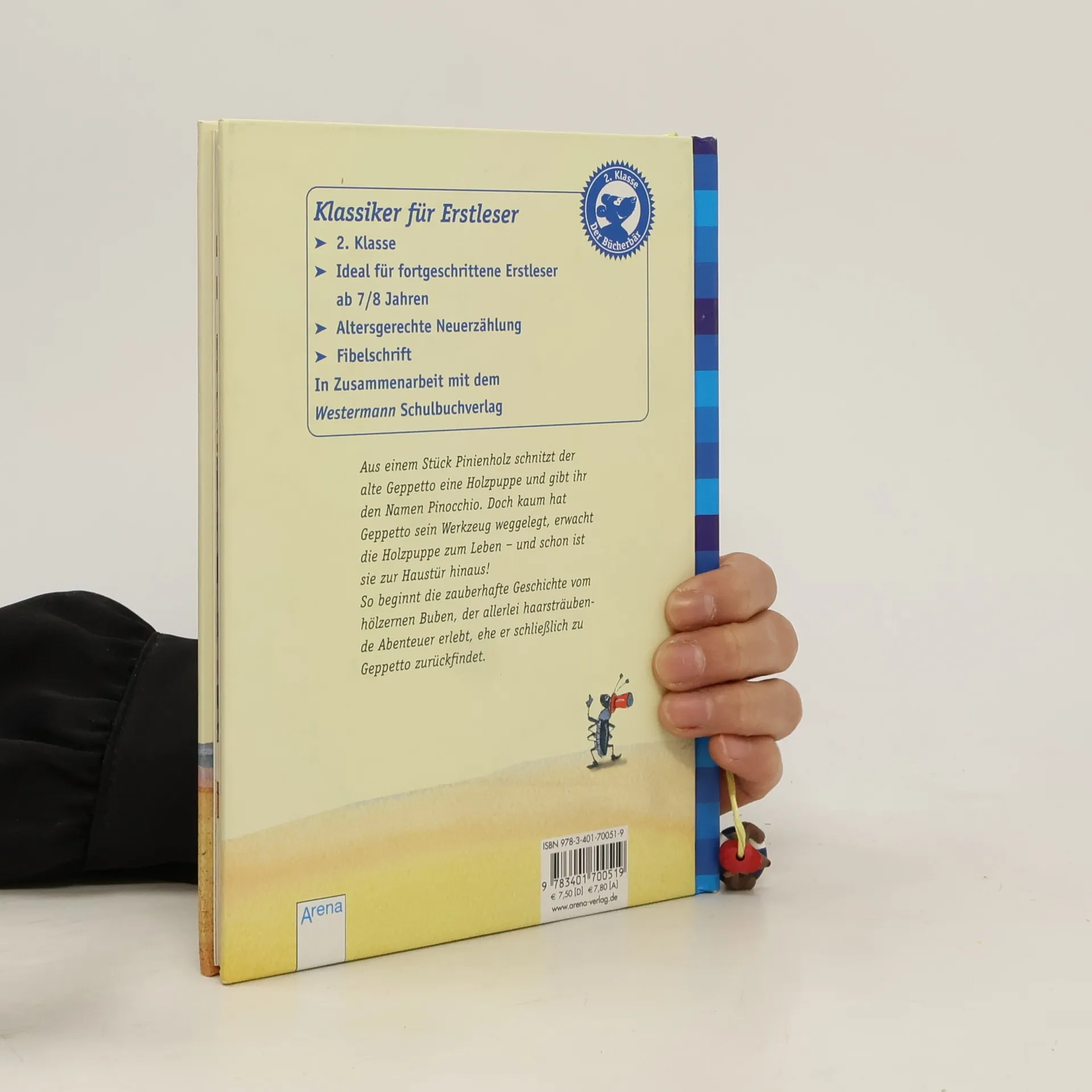 Die erfolgreiche Kinderbuchreihe mit bewährtem Konzept für das gemeinsame Lesenlernen und –üben In der Werkstatt des alten Gepetto ereignet sich eines Nachts etwas Wundersames: Der Holzschnitzer erschafft eine Puppe und gibt ihr den Namen Pinocchio. Doch kaum hat er sein Werkzeug weggelegt, erwacht die Holzpuppe zum Leben – und ist zur Haustür hinaus! Dort warten zahlreiche Abenteuer auf Pinocchio. Doch damit dessen größter Wunsch in Erfüllung geht und aus ihm ein richtiger Junge wird, muss er über sich selbst hinauswachsen.Pinocchios Abenteuer haben auch 130 Jahre nach ihrer Entstehung nichts von ihrem Zauber eingebüßt. Stimmungsvoll nacherzählt von Patricia Schröder.Wenn das Lesen für Leseanfänger noch mühsam ist, heißt es in vielen Familien: »Lass uns gemeinsam lesen. Erst ich ein Stück, dann du. Wir wechseln uns ab.« Deswegen ist unsere beliebte Erstleser-Reihe »Erst ich ein Stück, dann du« speziell für das gemeinsame Lesen konzipiert:* Leseabschnitte für die erfahrenen Vorleser und die Leseanfänger wechseln sich ab* längere Passagen für Vorleser in kleiner Schrift* kurze Texte für Leseanfänger in FibelschriftSo macht gemeinsames Leselernen Spaß! Ausstattung: Mit fbg. Illustrationen