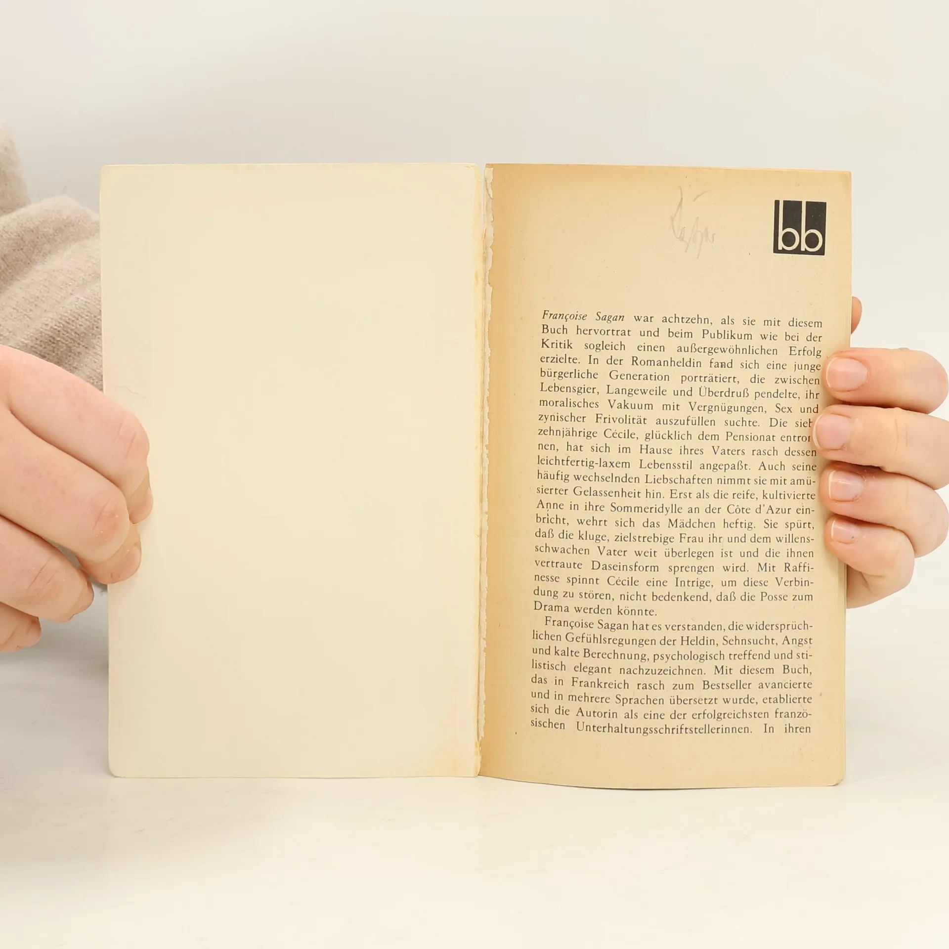 Millionenbestseller und Skandalroman: Die freizügige Sommergeschichte um einen charmanten Witwer und seine Tochter Cécile, die die neue Liebhaberin ihres Vaters in den Tod treibt, machte die damals 18jährige Sagan mit einem Schlag berühmt.