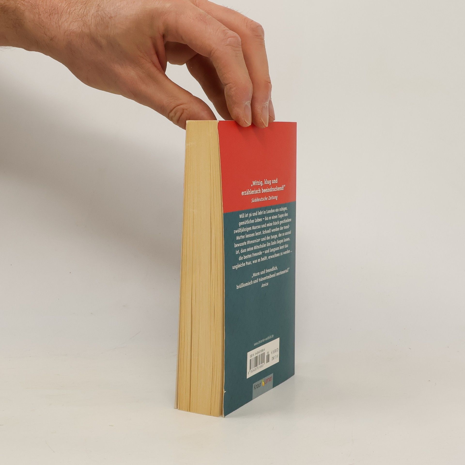Der Roman für Singles, Väter, Mütter und Kinder, denen das Leben manchmal hart zusetzt und die sich trotzdem nicht unterkriegen lassen! Will ist 36, durch eine Erbschaft finanziell unabhängig und lebt in London ein eigentlich ruhiges, gemütliches Leben - bis er eines Tages den zwölfjährigen Marcus (und seine frischgeschiedene Mutter) kennenlernt. Schnell werden der trendbewußte und Fußball-begeisterte Womanizer und der Junge, der so uncool ist, daß seine Mitschüler ihn links liegen lassen, dicke Freunde, und irgendwann lernt das ungleiche Paar - der Jüngere steckt noch nicht ganz in der Pubertät, der Ältere scheint sie immer noch nicht hinter sich gelassen zu haben - gemeinsam, was es heißt, erwachsen zu werden...