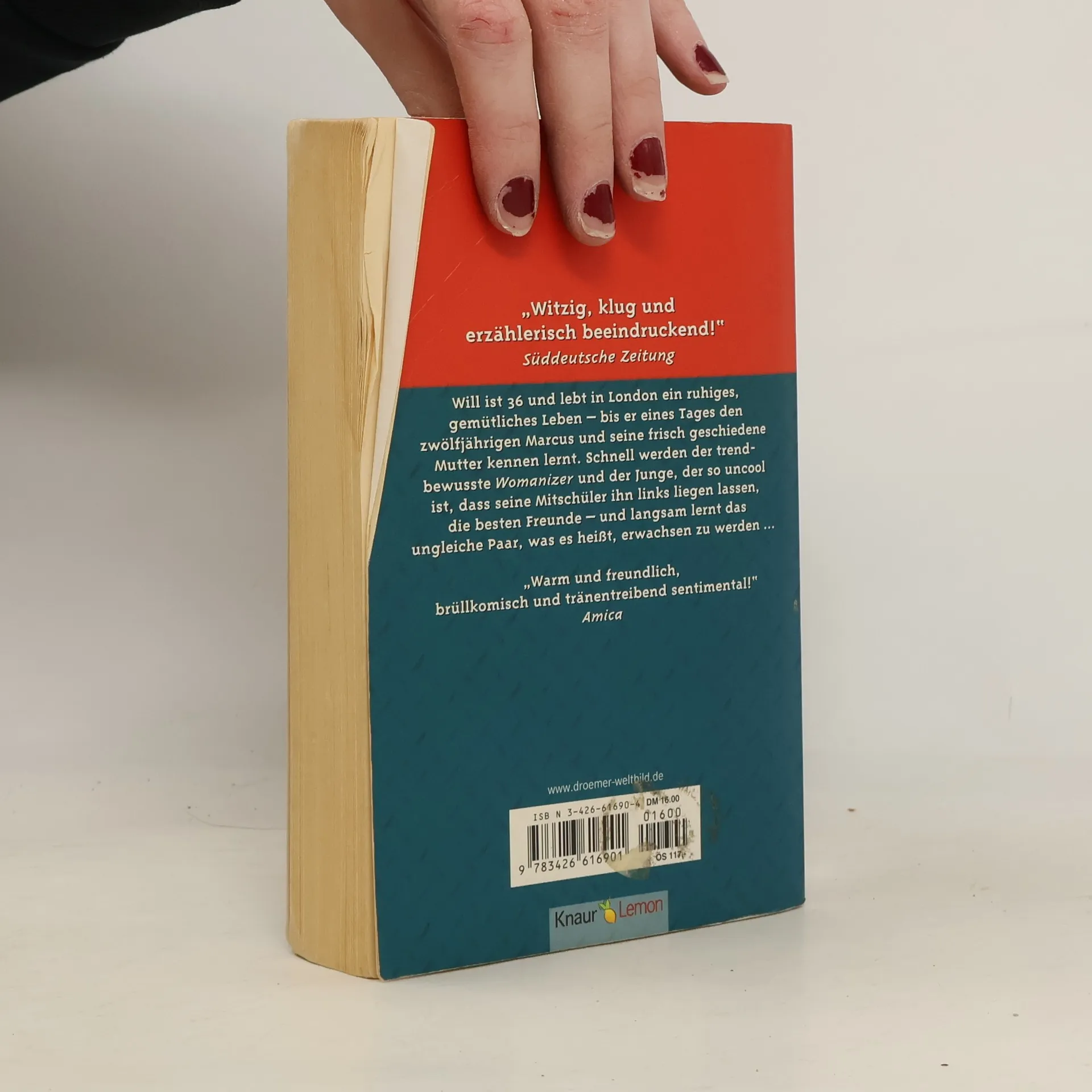 Der Roman für Singles, Väter, Mütter und Kinder, denen das Leben manchmal hart zusetzt und die sich trotzdem nicht unterkriegen lassen! Will ist 36, durch eine Erbschaft finanziell unabhängig und lebt in London ein eigentlich ruhiges, gemütliches Leben - bis er eines Tages den zwölfjährigen Marcus (und seine frischgeschiedene Mutter) kennenlernt. Schnell werden der trendbewußte und Fußball-begeisterte Womanizer und der Junge, der so uncool ist, daß seine Mitschüler ihn links liegen lassen, dicke Freunde, und irgendwann lernt das ungleiche Paar - der Jüngere steckt noch nicht ganz in der Pubertät, der Ältere scheint sie immer noch nicht hinter sich gelassen zu haben - gemeinsam, was es heißt, erwachsen zu werden...