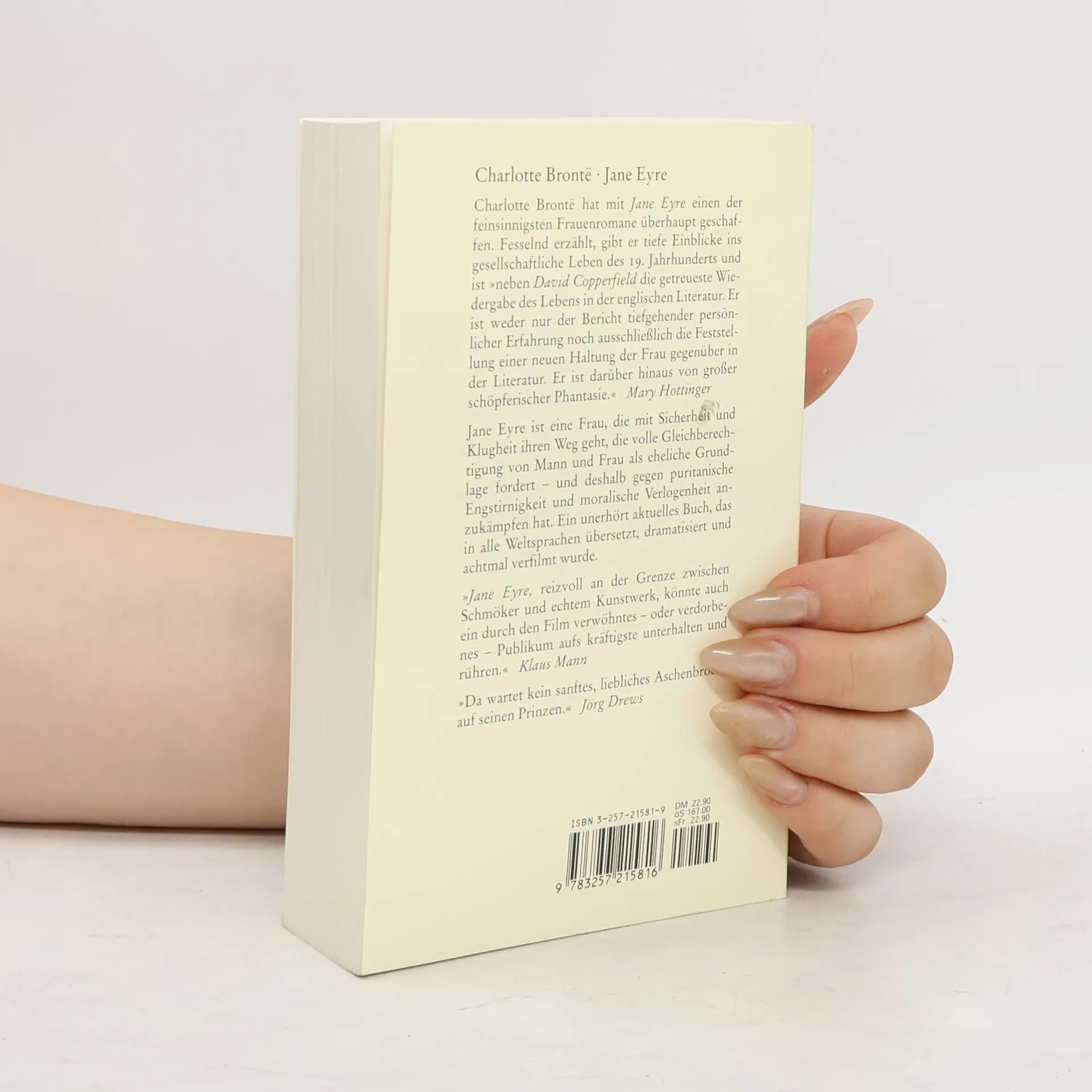 Jane Eyre ist eine Frau, die mit Sicherheit und Klugheit ihren Weg geht, die volle Gleichberechtigung von Mann und Frau, als eheliche Grundlage fordert - und deshalb gegen puritanische Engstirnigkeit und moralische Verlogenheit anzukämpfen hat. Ein unerhört aktuelles Buch, das in alle Weltsprachen übersetzt, dramatisiert und vielfach verfilmt wurde. Charlotte Brontë hat mit Jane Eyre einen der feinsinnigsten Frauenromane überhaupt geschaffen.