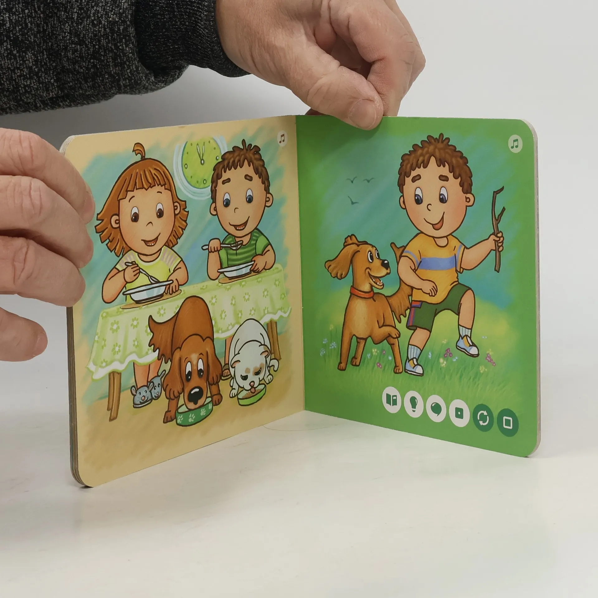 Pojďte strávit jeden den se sourozenci Honzíkem a Barborkou a jejich věrnými společníky, pejskem Benem a kočičkou Mínou. Vstanete s nimi, vyčistíte si zoubky, dáte si něco dobrého k obědu, pohrajete si a můžete si i zazpívat. Všechny činnosti totiž doprovází písnička.