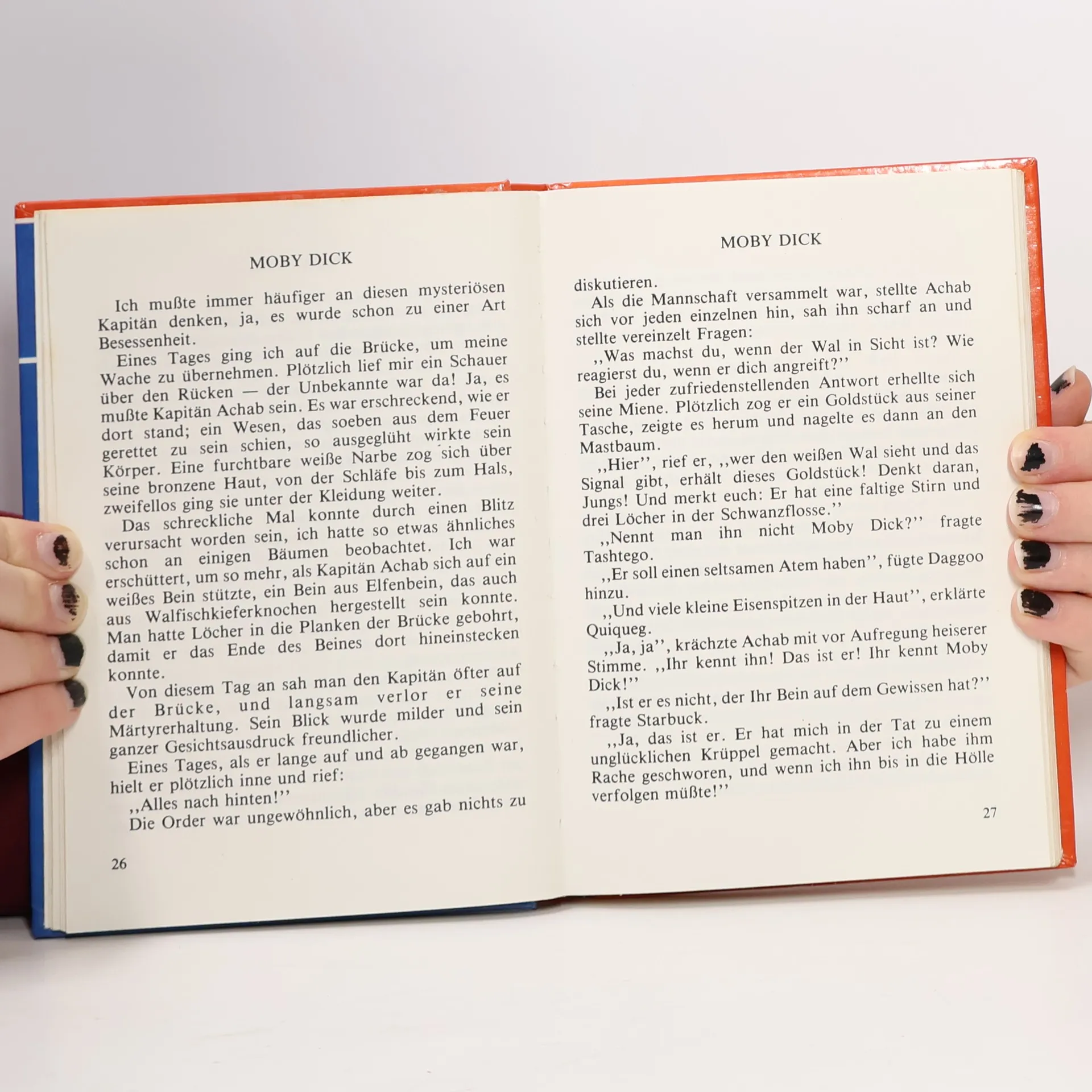 Da das Buch in vielen Filmen und anderen Geschichten immer so gehypt wurde wollte ich diesen Klassiker auch unbedingt mal lesen. Ich bin für viele Themen offen und habe schon einige alte Klassiker gelesen, egal wie schwer sie waren. Dieses jedoch traf in absolut keinem Fall meinem Geschmack und habe es somit in der Mitte des Buches abgebrochen und weg gelegt. Unabhängig von der anstrengenden Schreibweise, hat mich auch das Walfangthema ziemlich getriggert. Vielleicht war es zu der damaligen Zeit ein gut geschriebenes Buch mit interessanten Inhalten. Ich jedoch hab mich bis zur Mitte einfach nur durchgequält.