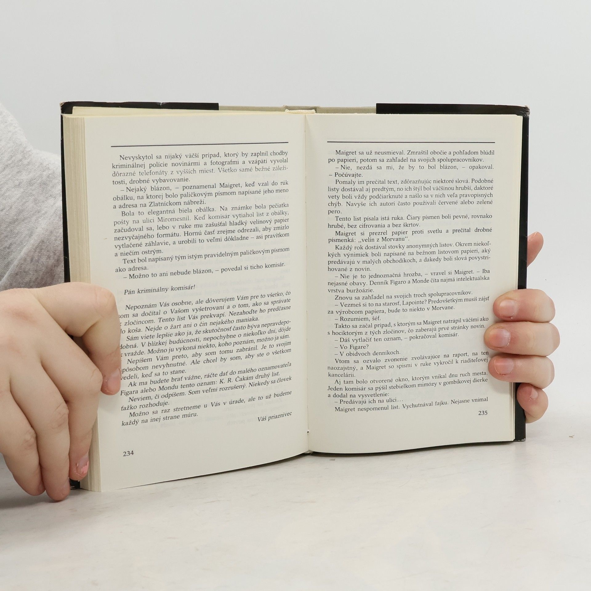 Komisár Maigret vyšetruje a zatýka, no väčšmi ako odhalenie zločinca ho zaujímajú psychologické a spoločenské motívy zločinu. V prvej detektívke (Maigret sa hnevá) vyšetruje komisár prípad utopenej dievčiny. V ďalších dvoch príbehoch (Maigretove starosti a Maigret váha) ide o vraždu, naktorú bol komisár vopred upozornený.