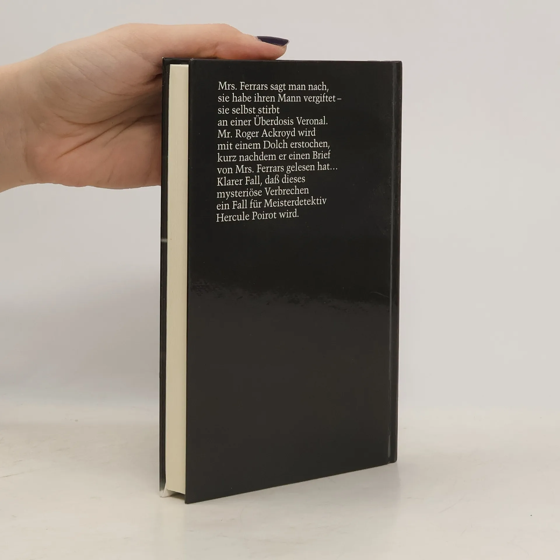 «Jeder hat etwas zu verbergen», erklärt Hercule Poirot. Und tatsächlich wird gemunkelt in dem beschaulichen Dorf, in das sich Poirot zurückgezogen hatte, um Kürbisse zu züchten: Mrs Ferrars soll ihren Mann vergiftet haben. Dann stirbt sie selbst an einer Überdosis Veronal. Wurde sie vielleicht erpresst? Und hatte sie tatsächlich eine Affäre mit Roger Ackroyd? Der wird schließlich mit einem tunesischen Dolch erstochen aufgefunden. Und sein Stiefsohn ist spurlos verschwunden. Vielleicht weiß ja der Vertrauen erweckende Dr. Sheppard wo er sich aufhält, doch der nimmt es mit der ärztlichen Schweigepflicht sehr genau...