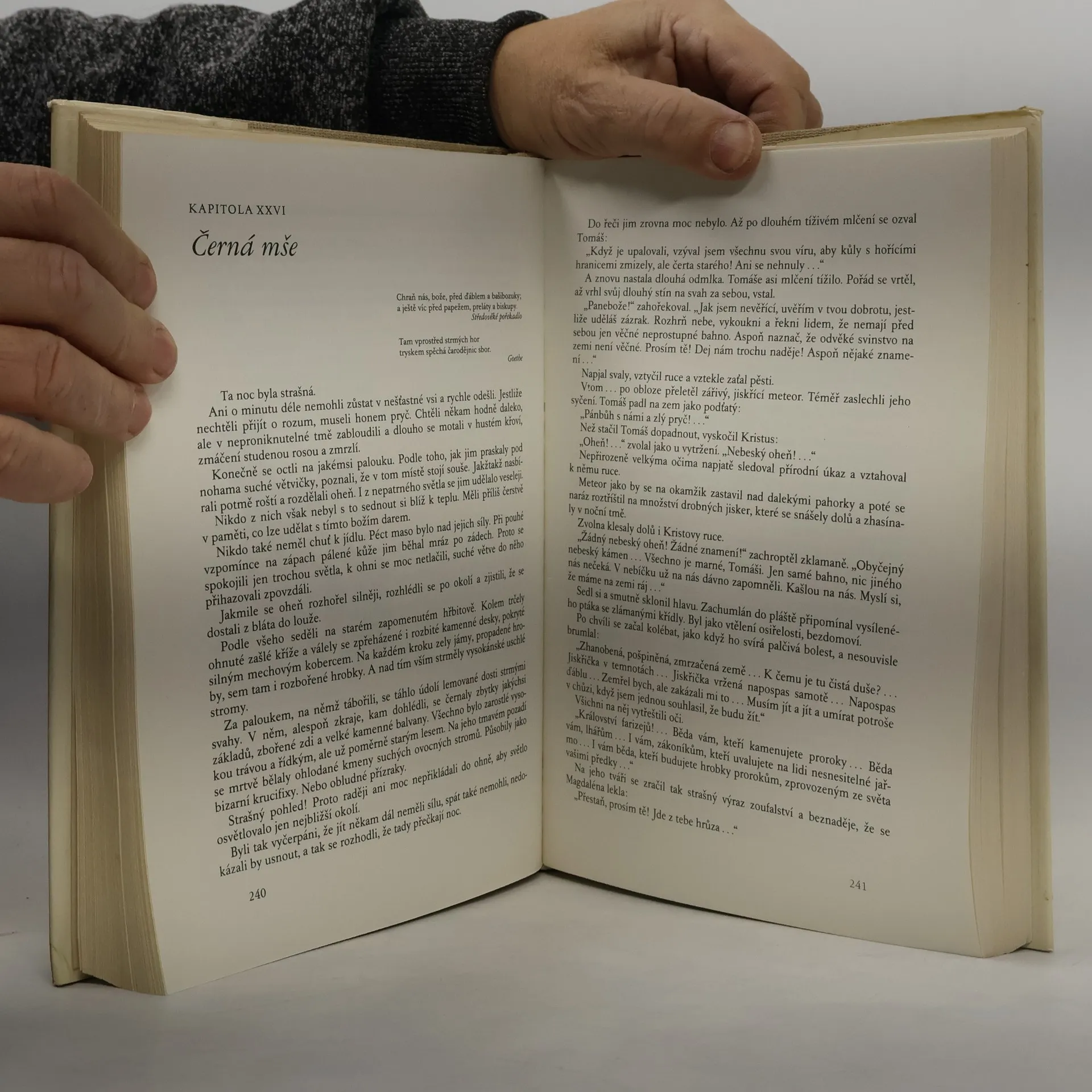 Toho roku obyvatelé starobylého města Harodna propadli panice. Už dlouhou dobu sužuje kraj úmorné sucho, neurodilo se obilí. Zatímco církevní a světští hodnostáři - kardinál Cyprián Lotr, kaplan dominikánského kláštera Bosácký, biskup Komár, obtloustlý pravoslavný metropolita Balvanovič, přihlouplý starosta města Žába - pořádají nadále okázalé hostiny, hladovějící zástupy, srocené na náměstí, volají po chlebu.... A zrovna v tom okamžiku se sem blíží podivné procesí: třináct mužů v pytlovině, utrmácených a zaprášených. V čele kráčí mladík s trnovou korunou na hlavě, vleče obrovský dřevěný kříž. Jurodivý zvedl k nebi ruce s prorocky zdviženými prsty a zvolal: "Už jde! Blíží se ten, který podruhé spasí lidský rod! Přichází Kristus..." Karakěvičova tragikomedie, stylizovaná v duchu renesančního románu a časově situovaná do první poloviny 16. století, líčí humorná i drastická dobrodružství jedné z potulných divadelních skupin. Zdánlivě je to dost podezřelá sebranka: zkrachovalý kramář, rybář,dřevorubec, zchudlý šlechtic, bývalý celník, nevysvěcený diákon.... Všichni na slovo poslouchají mazaného šibala Juráše Bratříka, který v pašijových hrách představuje Krista. A právě tento lehkomyslný tulák, když pozná zuboženost země, začne brát svou roli vážně - z podvodníka se stává opravdový vůdce lidových mas.