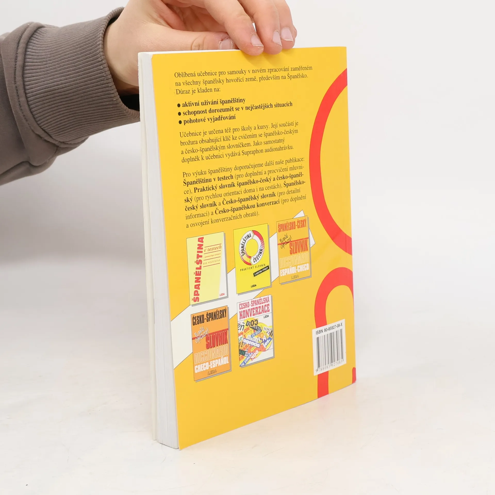 Oblíbená učebnice pro samouky v novém zpracování zaměřené na všechny španělsky hovořící země, především na Španělsko. Důraz je kladen na: . aktivní užívání španělštiny . schopnost dorozumět se v nejčastějších situacích . pohotové vyjadřování Učebnice je určena též pro školy a kursy. Její součástí je brožura obsahující klíč ke cvičením (119 s.) se španělsko-českým a česko-španělským slovníčkem. Jako samostatný doplněk k učebnici vydává Supraphon audionahrávku.