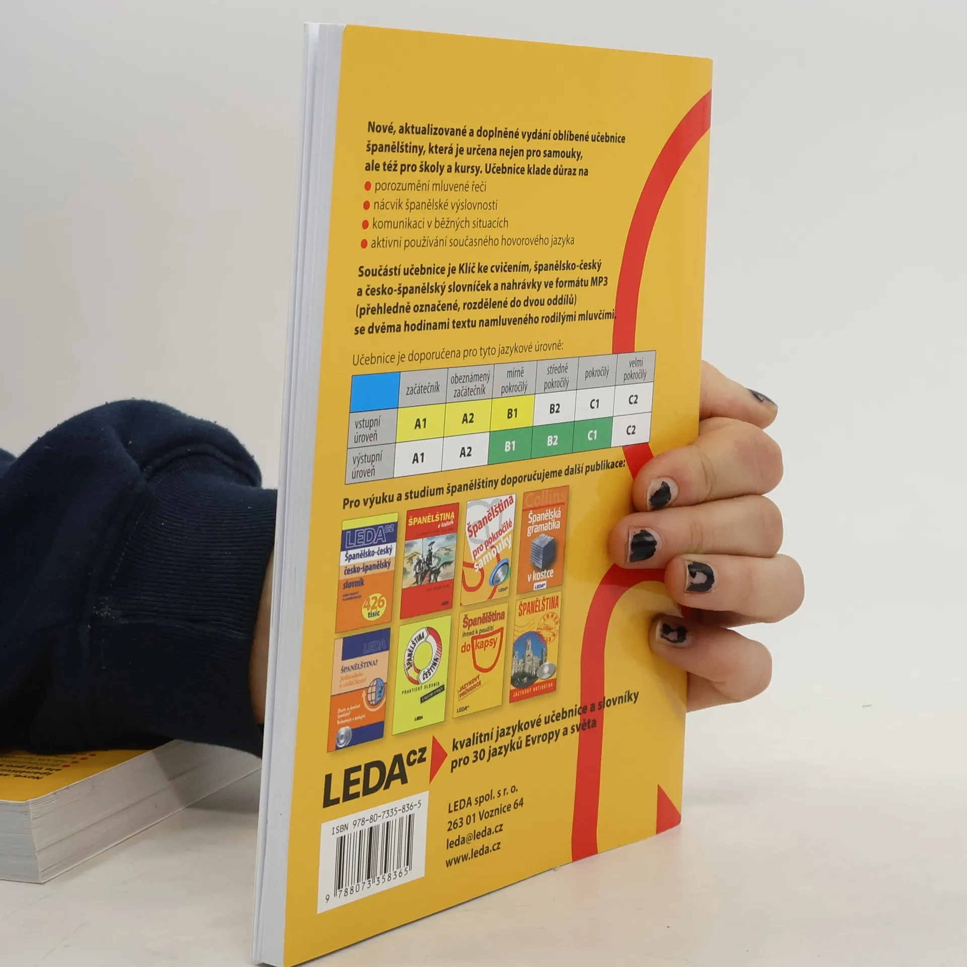Nové, aktualizované a doplněné vydání oblíbené učebnice zaměřené na výuku evropské španělštiny (doplňkově je pozornost věnována také španělštině latinskoamerické), a to jednoduchou, přehlednou a zábavnou metodou. Ve 44 lekcích uživatel nalezne tematicky i stylisticky rozmanité texty, nejfrekventovanější slovní zásobu španělštiny a běžné frazeologismy. Gramatika je vysvětlována co nejjednodušeji a velmi přehledně a je doprovázena řadou pestrých cvičení. Formou poznámek k textu autorka seznamuje uživatele s reáliemi hispanofonních zemí. Klíč ke cvičením a závěrečný test slouží k samokontrole úspěšnosti. Nedílnou součástí je nahrávka v mp3, která je k dispozici ke stažení pod touto anotací. Učebnice je určena nejen samoukům, ale i účastníkům jazykových kursů, studentům středních škol a učilišť i těm, kdo si chtějí rozšířit či osvěžit již dříve získané znalosti španělského jazyka a používat ho v běžných životních situacích. Zvládnutí učebnice zaručuje dosažení stupně pokročilosti B2 až C1 podle doporučení Rady Evropy.