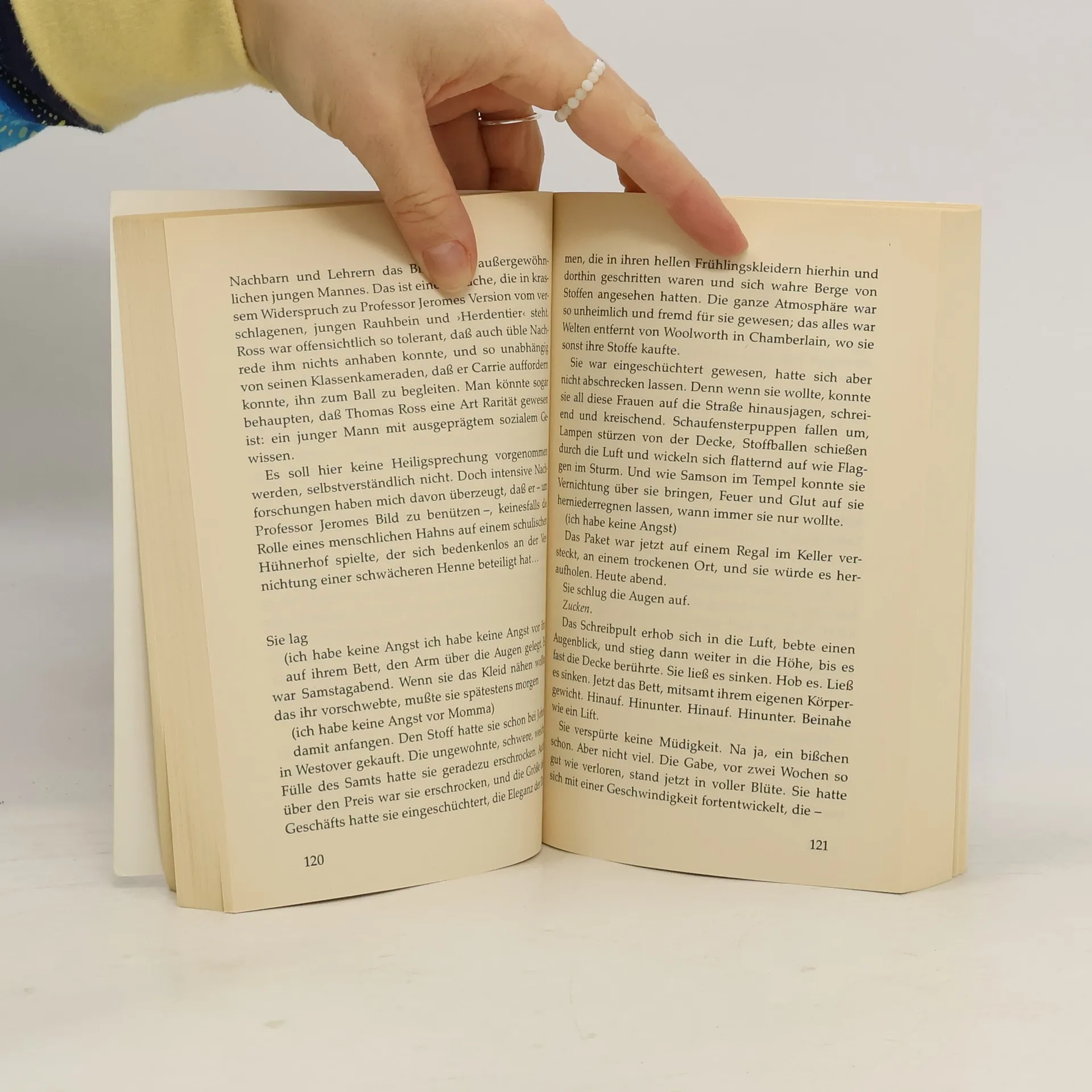 Als Dreijährige lässt sie einen Steinregen auf ihr Elternhaus niederregnen, weil ihre Mutter ihr in einem Anfall religiösem Wahns nach dem Leben trachtet. Als Sechzehnjährige muss sie einen Augenblick tiefster Demütigung erleben. Schon immer von ihren Mitschülern wegen ihrer scheuen zurückhaltenden Art gehänselt, wird sie auf dem Abschlussball der Schule das Opfer eines bösen Streichs. Schmerz, Enttäuschung, Wut treiben Carrie zum Äußersten, die beseelt und besessen ist von einer unheimlichen Gabe: Mit schierer Kraft ihres Willens entfesselt sie ein Inferno, gegen das die Hölle ein lieblicher Garten Eden ist. Das ist Carrie - beseelt, besessen von einer unheimlichen Gabe mit ungeheurer Tragweite und furchtbaren Folgen.