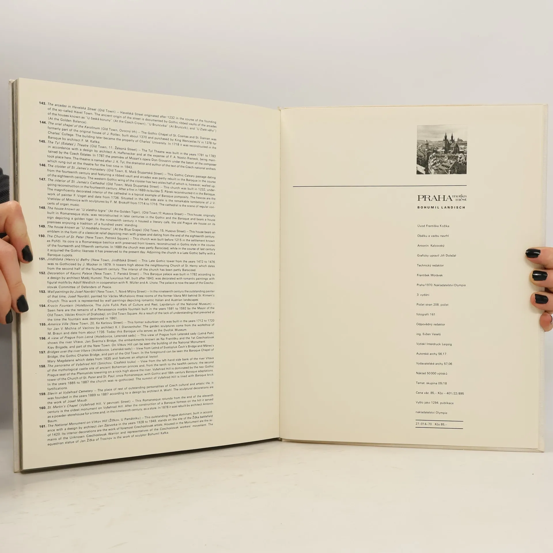 Kniha všestraně dokonalých černobílých fotografií, které nikoho nezklamou. Ke všem fotografiím jsou popisy také v němčině, angličtině, ruštině. Recenze fotografií jako takových v knize chybí. Je zde pouze "óda" na Prahu autora Františka Kožíka, samozřejmě přeložená i do zmíněných jazyků. 2. vydání