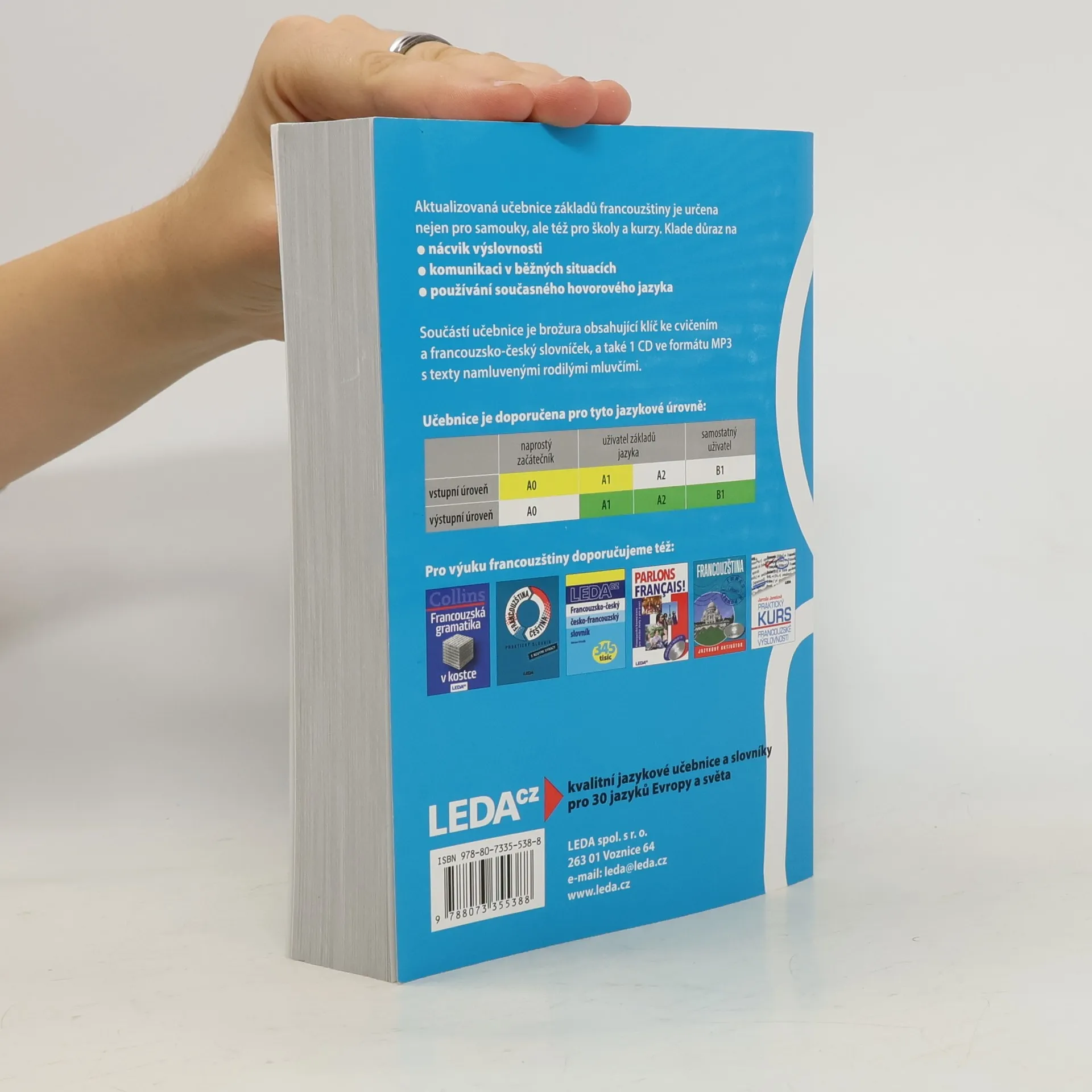 Aktualizovaná a doplněná verze oblíbené učebnice určené samoukům, účastníkům jazykových kurzů, studentům i „věčným“ začátečníkům, kteří si potřebují osvěžit své znalosti. Učebnice má 35 lekcí a každá obsahuje úvodní text, slovíčka, frazeologismy i francouzské reálie spjaté s každodenním životem. Následuje mluvnická část, na niž navazují cvičení. Výslovnost a pravopis jsou probírány v prvních 15 lekcích, každý fonetický jev je důkladně procvičen. Součástí učebnice je jednak brožura s klíčem ke cvičením a francouzsko-českým slovníčkem, jednak dvě audio CD, na nichž rodilí mluvčí nahráli úvodní texty, dialogy, všechna fonetická a vybraná mluvnická cvičení. Pokud uživatel poctivě prostuduje celou učebnici, měly by jeho jazykové znalosti odpovídat nejlepšímu maturitnímu průměru.
