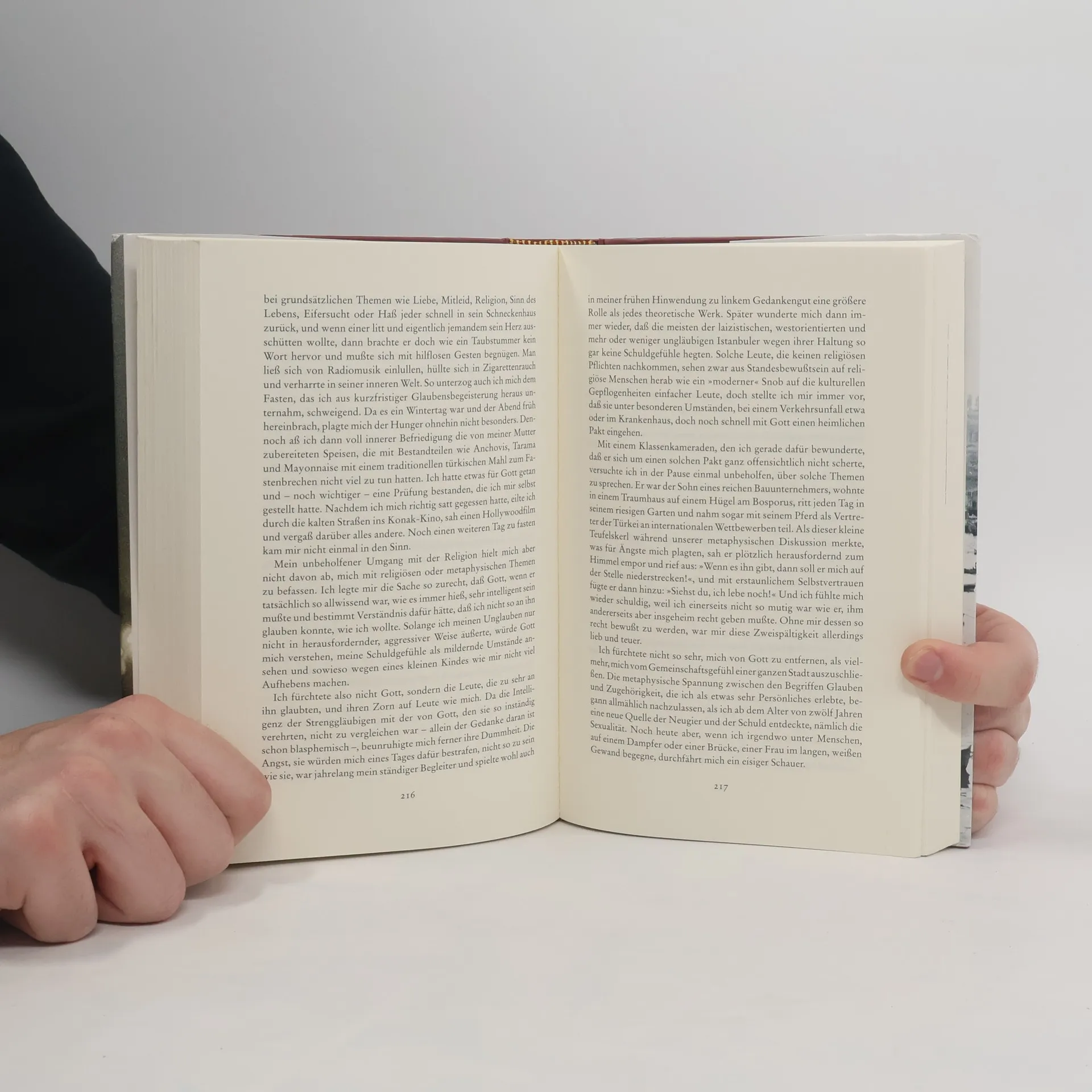 Dies Buch war mir auf einer Städtereise nach Istanbul sehr empfohlen worden. Es sollte mir quasi zur Nachbereitung und Vertiefung dieser mit sehr vielen Eindrücken angefüllten Kurzreise dienen. Mit dem Schreibstil von Orhan Pamuk habe ich allerdings einige Schwierigkeiten: er schreibt sehr lange, verschachtelte „Bandwurmsätze“, so dass ich häufig einen zweiten Anlauf für das Verständnis eines Satzes benötige. Da mir der Inhalt aber durchaus zusagt, werde ich es zu Ende lesen, muss es aber auch immer wieder einmal zur Seite legen. - Das mir zugesandte Exemplar ist übrigens in allerbestem Zustand!