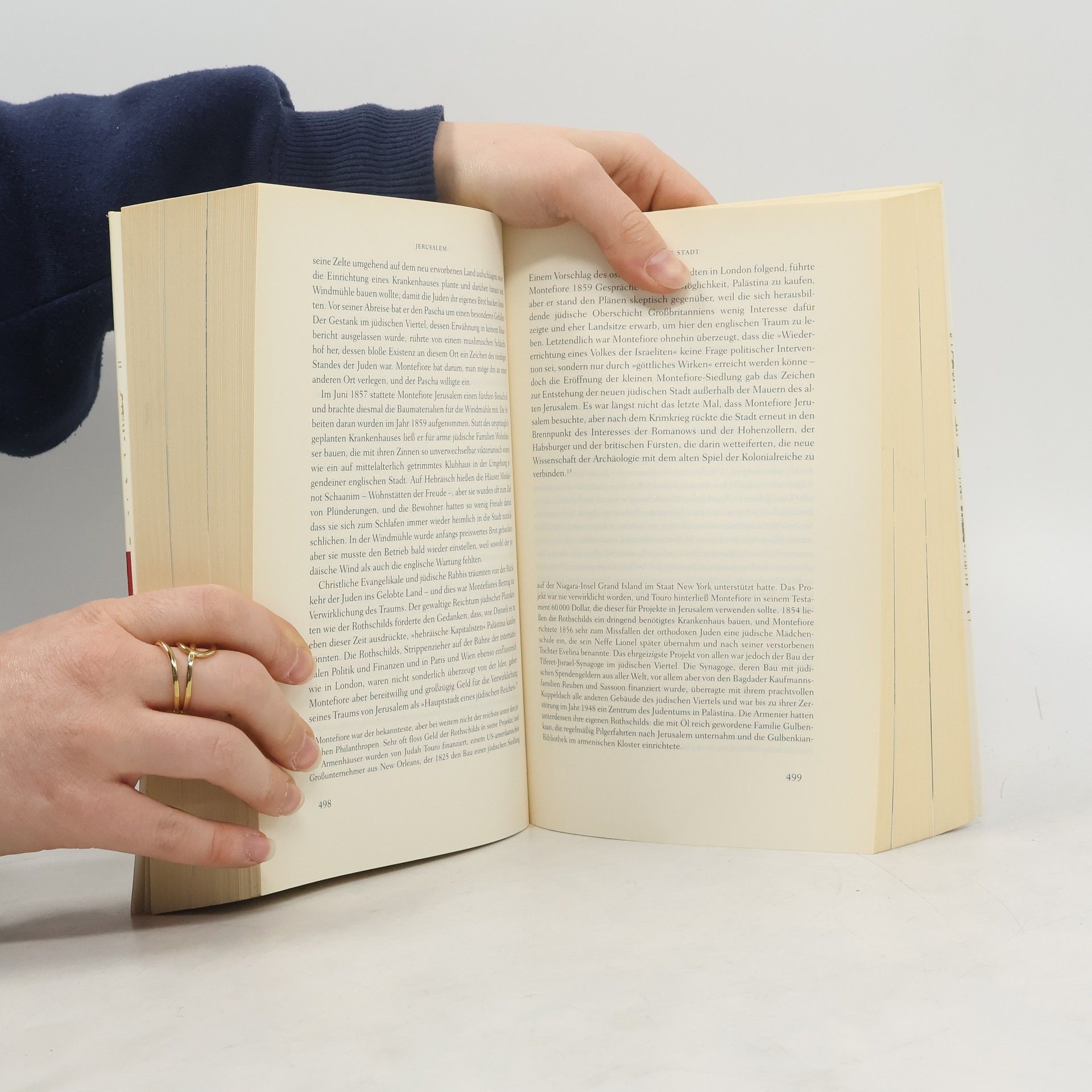 Die Geschichte Jerusalems ist die Geschichte der Welt. Diese Stadt ist nicht nur die Hauptstadt zweier Völker, sondern auch der Schrein dreier Weltreligionen und der Brennpunkt des Nahost-Konflikts. Sie steht für 3000 Jahre Glauben, Fanatismus und Kampf sowie für das Zusammenleben unterschiedlichster Kulturen. Der Bestsellerautor Sebag Montefiore schildert in seiner reich bebilderten Biographie die wechselvolle Geschichte dieser Stadt, die von Kriegen, Affären, Königen, Propheten und Eroberern geprägt ist. Mit neuester Forschung und teils unbekanntem Archivmaterial bringt er die Essenz Jerusalems zum Leben. Montefiore gelingt es, die Stadt in ihrer Einzigartigkeit erstrahlen zu lassen, denn sie existiert sowohl im Himmel als auch auf Erden. Die lebendige Erzählweise zieht die Leser in ihren Bann, und die komplexen Themen werden verständlich aufbereitet. Dieses gewaltige Portrait ist durchweg überwältigend und vereint den Blick eines Romanciers mit dem Spürsinn eines Journalisten und dem Können großer Historiker. Es ist ein Werk voller Leidenschaft und Gelehrsamkeit, das die Absurditäten und Abenteuer der Geschichte eindrucksvoll darstellt. Montefiore schafft es, die 3000-jährige Geschichte Jerusalems wie einen spannenden Roman zu erzählen, der niemals langweilig wird.