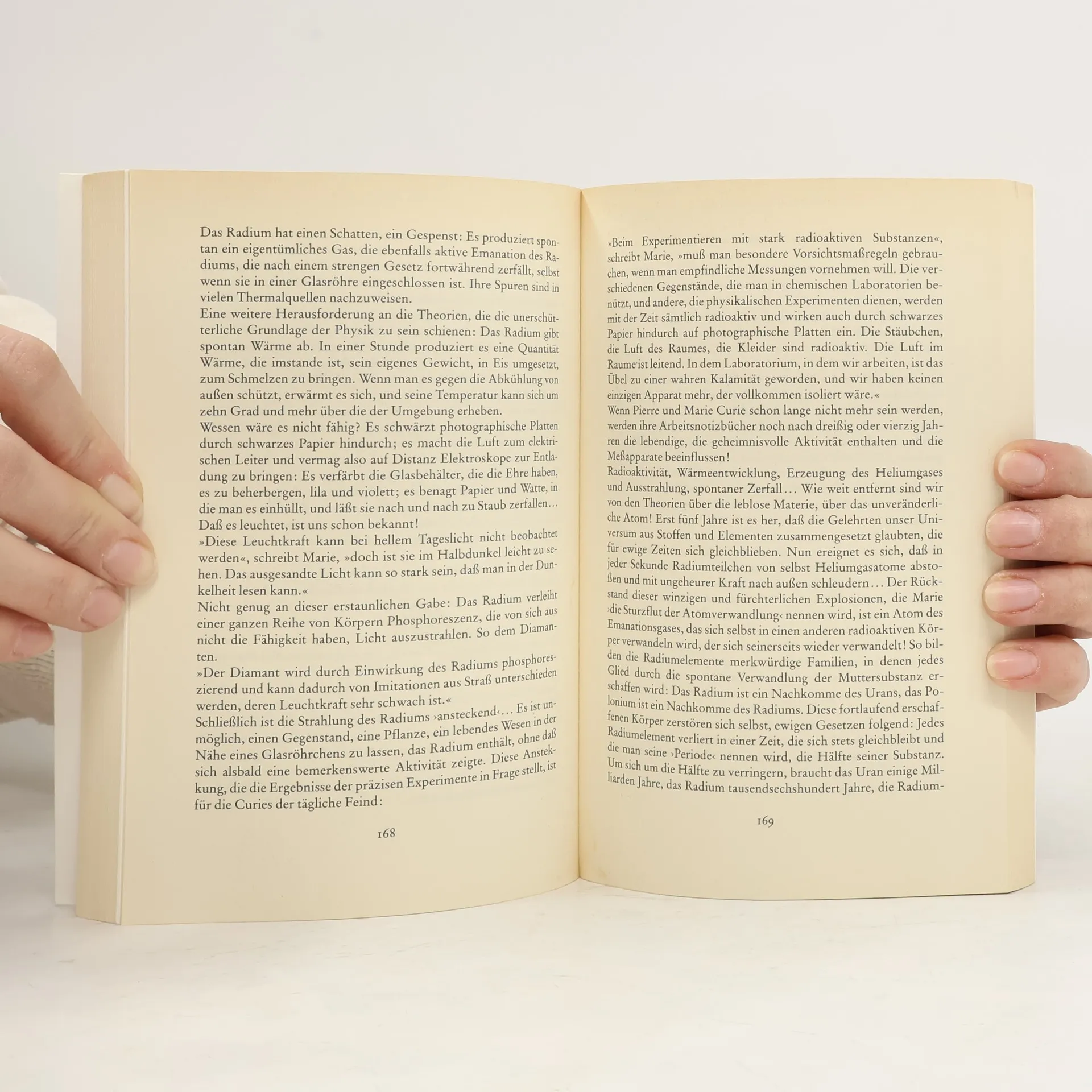 Diese Biographie der Madame Curie, die zuerst 1937, drei Jahre nach ihrem Tod, erschien, wurde ein aufsehenerregender Welterfolg. Das Leben der berühmten Physikerin und Nobelpreisträgerin Marie Curie, die das Radium entdeckte, wird von ihrer Tochter Eve erzählt. Anhand von Briefen, Tagebüchern und Erinnerungen schildert Eve Curie die Geschichte dieser ungewöhnlichen Frau, die 1867 in Warschau geboren wurde, als Studentin nach Paris ging und dort in jungen Jahren bereits mit ihren Entdeckungen die Naturwissenschaft unseres Jahrhunderts entscheidend prägte. Nach monatelangen Versuchen und unter Mithilfe ihres Mannes Pierre Curie gelingt es ihr, das Radium zu entdecken. 1903 beschließt daraufhin die Akademie der Wissenschaften in Stockholm, den Nobelpreis für Physik je zur Hälfte an Henri Becquerel und an Pierre und Marie Curie zu verleihen. Nach dem Tod ihres Mannes arbeitet Marie Curie unermüdlich weiter; sie hält als erste Frau Vorlesungen an der Sorbonne, und 1911 spricht ihr die Akademie der Wissenschaften den Nobelpreis für Chemie zu.Wie eine Chronik phantastischer Abenteuer lesen sich die allgemeinverständlich geschriebenen Berichte über die wissenschaftlichen Entdeckungen, bei denen der Autorin die Mitarbeit ihrer Schwester, der Nobelpreisträgerin Irène Joliot-Curie, half.