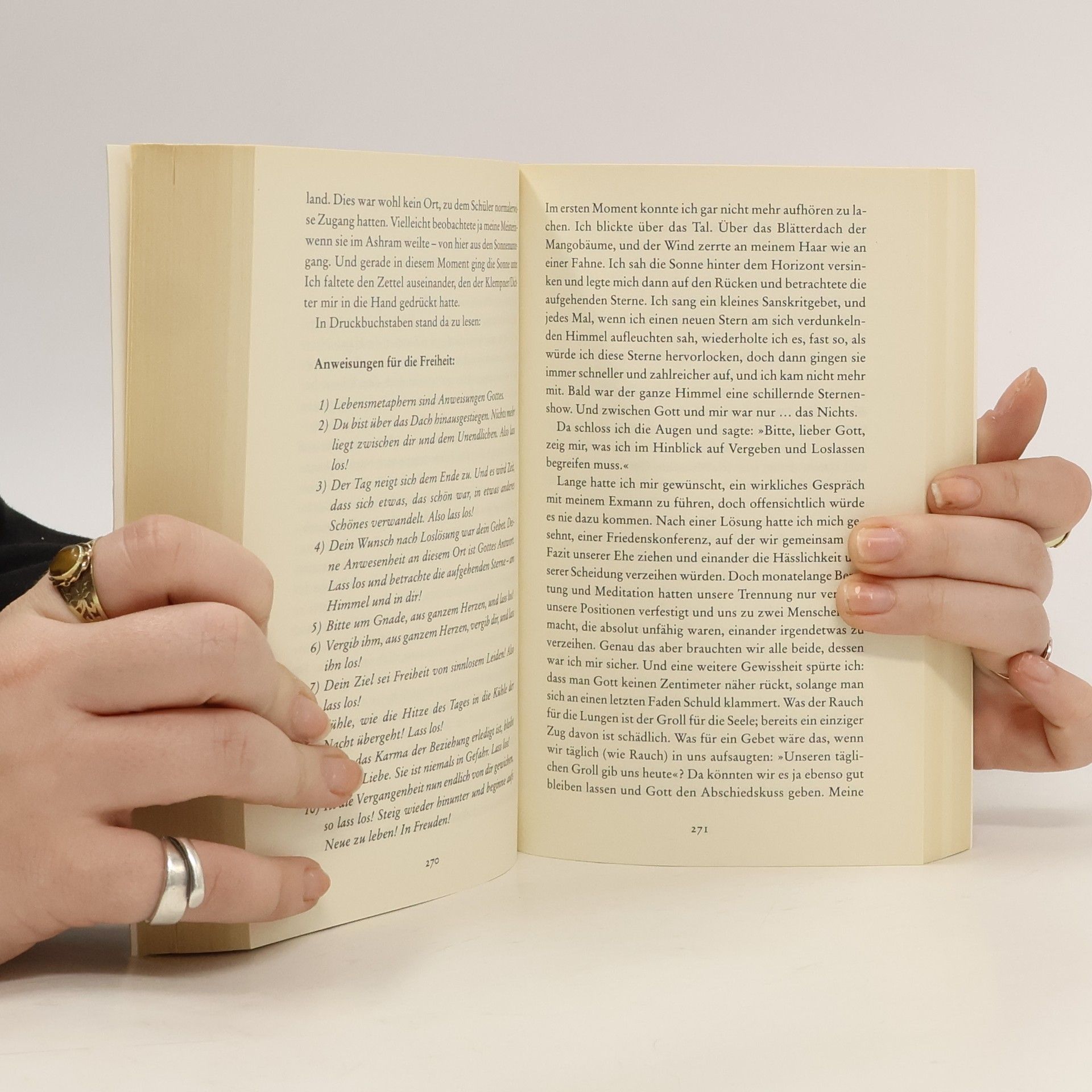 Essen. Beten. Lieben. Das ist es, was glücklich macht. Aber die einfachen Dinge sind die schwersten. Das weiß auch Elizabeth. Mit Anfang dreißig beschließt sie, nochmal ganz von vorne anzufangen. Sie lässt ihre Ehe, ihre Affäre, ihren Job in New York hinter sich und packt die Koffer für eine Reise, die die Reise ihres Lebens wird: Vier Monate Dolce Vita in Italien, vier Monate Meditation und Yoga in Indien - und vier Monate Bali, das eine berauschende Begegnung für sie bereithält.
