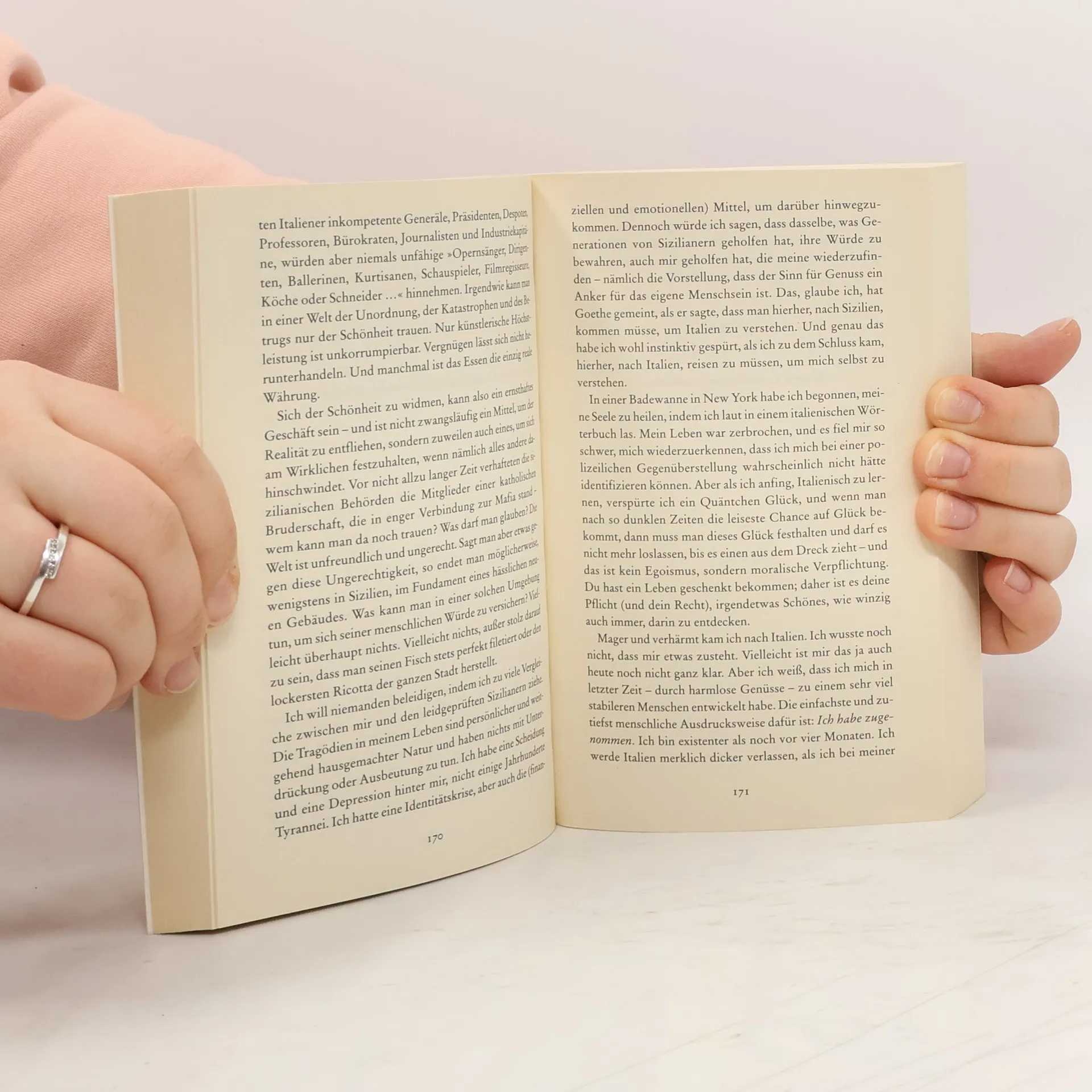 Essen. Beten. Lieben. Das ist es, was glücklich macht. Aber die einfachen Dinge sind die schwersten. Das weiß auch Elizabeth. Mit Anfang dreißig beschließt sie, nochmal ganz von vorne anzufangen. Sie lässt ihre Ehe, ihre Affäre, ihren Job in New York hinter sich und packt die Koffer für eine Reise, die die Reise ihres Lebens wird: Vier Monate Dolce Vita in Italien, vier Monate Meditation und Yoga in Indien - und vier Monate Bali, das eine berauschende Begegnung für sie bereithält.