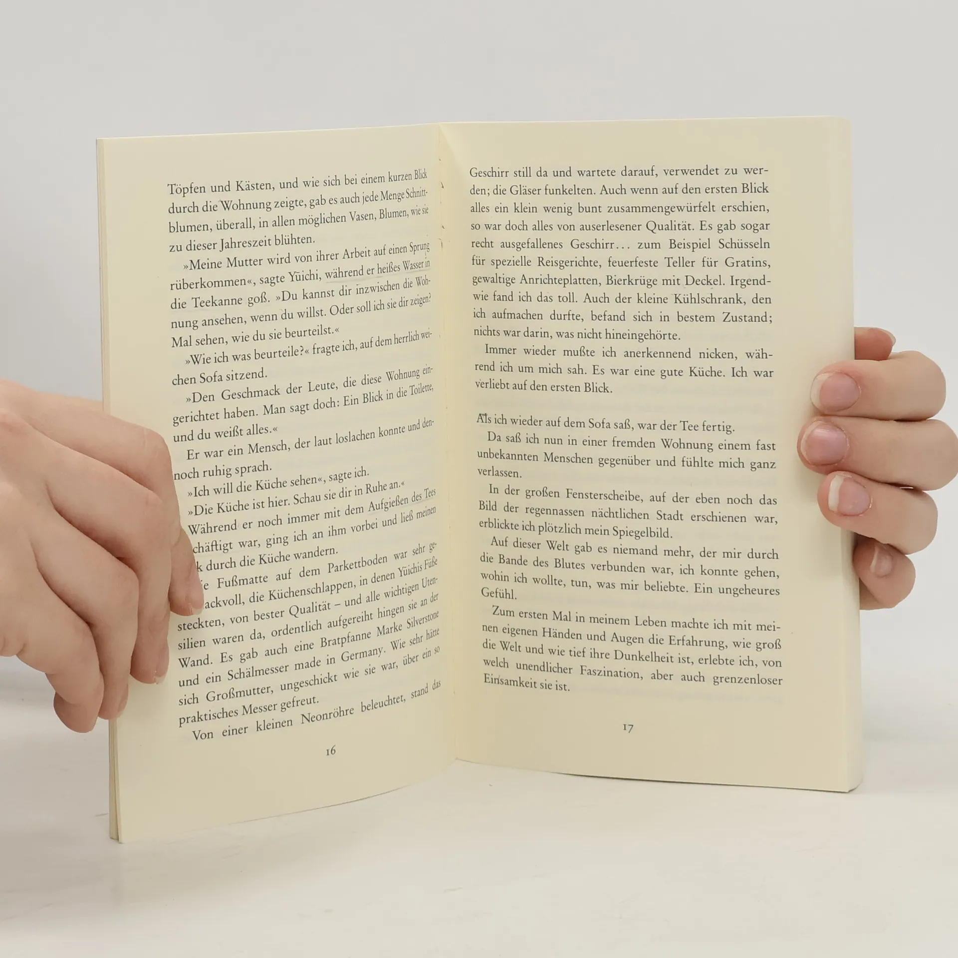 Als Mikage ihre Großmutter verliert, ist sie vollkommen allein in der großen Wohnung. Nur in der Küche, wo sie das Brummen des Kühlschranks in den Schlaf wiegt, kommt sie zur Ruhe. Aus ihrer Einsamkeit holt sie Yuichi. Er schlägt ihr vor, zu ihm und seiner Mutter zu ziehen. Es entwickelt sich eine merkwürdige Wohngemeinschaft. Denn Eriko, die wunderschöne »Mutter« Yuichis, hat eine schillernde Vergangenheit.