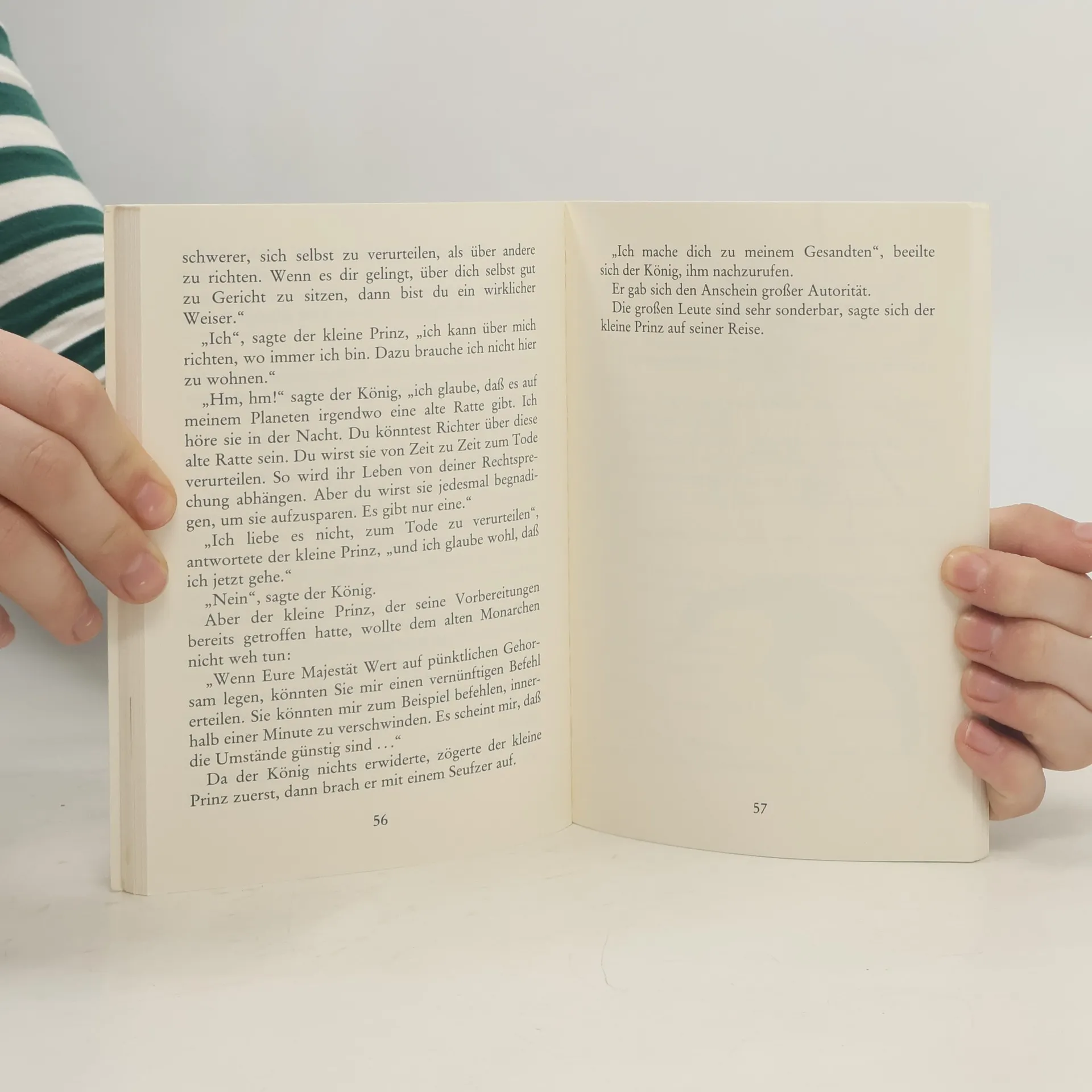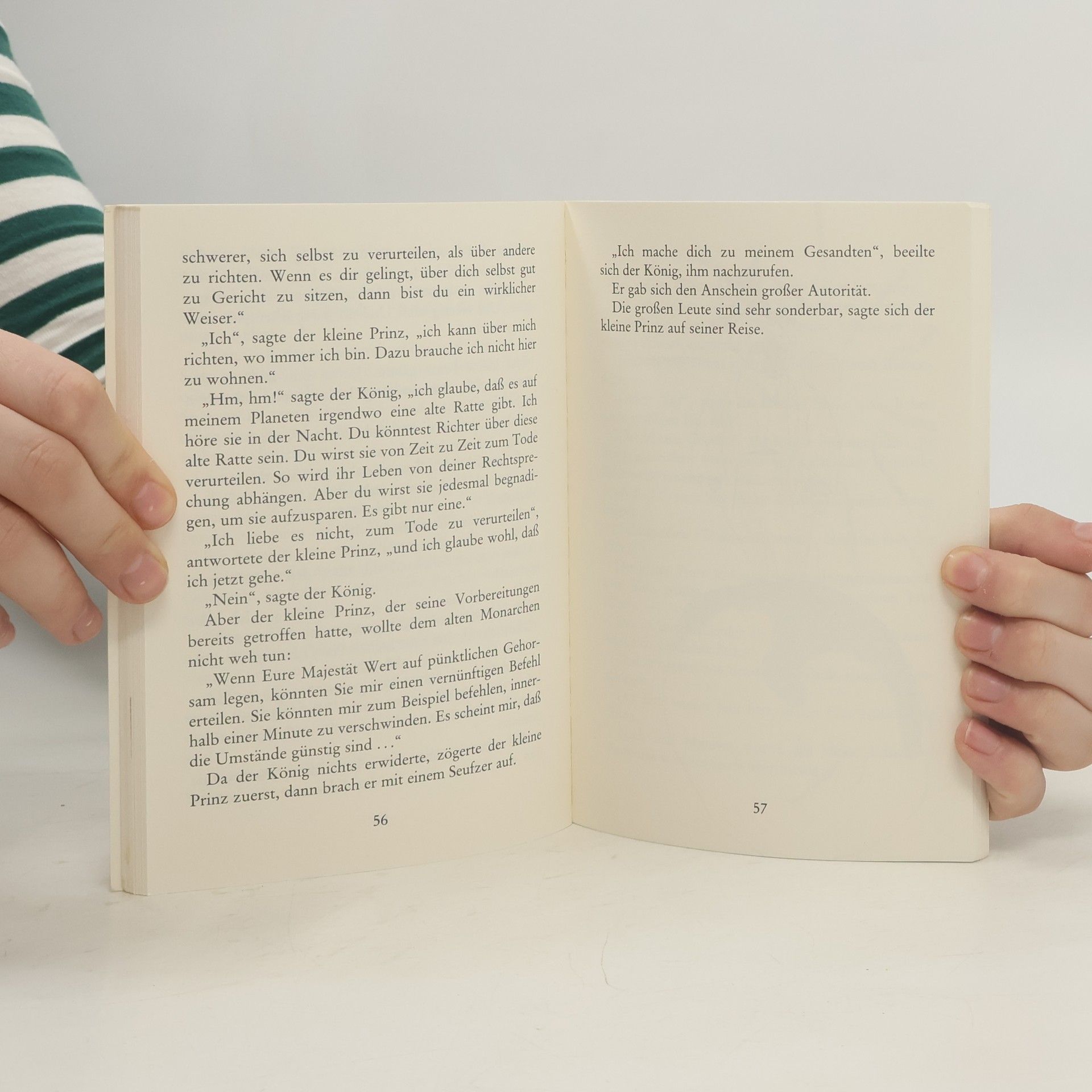 Längst ein Klassiker und Millionen können aus ihm zitieren: Der Kleine Prinz lebt zusammen mit seiner Rose auf dem Planeten Asteroid B 612 und besucht die Erde. Hier lernt er neben dem Erzähler, der mit seinem Flugzeug in der Wüste notlandete, unter anderem den Fuchs kennen, der ihm das Vertraut-machen erklärt: „Du bist zeitlebens dafür verantwortlich für das, was Du Dir vertraut gemacht hast“. Ein weltbekanntes Buch voller Weisheiten und mit vielen geläufigen Zitaten, wie „Man sieht nur mit dem Herzen gut“ oder „Das Eigentliche ist unsichtbar“.