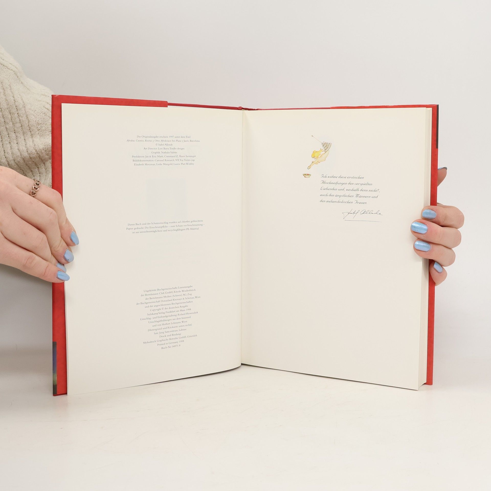 »Ich kann die Erotik nicht vom Essen trennen, und ich sehe auch keinen Grund, warum ich es tun sollte, im Gegenteil.« »Aphrodite« ist ein Zeugnis der reinen Lebensfreude. Im Zeichen der Göttin der Liebe eröffnet uns Isabel Allende eine wahrhafte ›Feier der Sinne‹. Spielerisch, übermütig und keck preist sie Bett- und Tafelfreuden, führt uns ein in die Welt der Genüsse und erzählt von ihren höchstpersönlichen Erfahrungen auf diesem schier unerschöpflichen Gebiet. Der Band versammelt erotische Geschichten aus Orient und Okzident, anregende Bilder, Gedichte und Anekdoten, aber auch poetische Beschreibungen der aphrodisischen Wirkung von Gerüchen und Gewürzen. Dazu eine Fülle erprobter oder auch gewagter Rezepte der großen Köchin Panchita, die nicht zufällig Isabel Allendes leibliche Mutter ist.