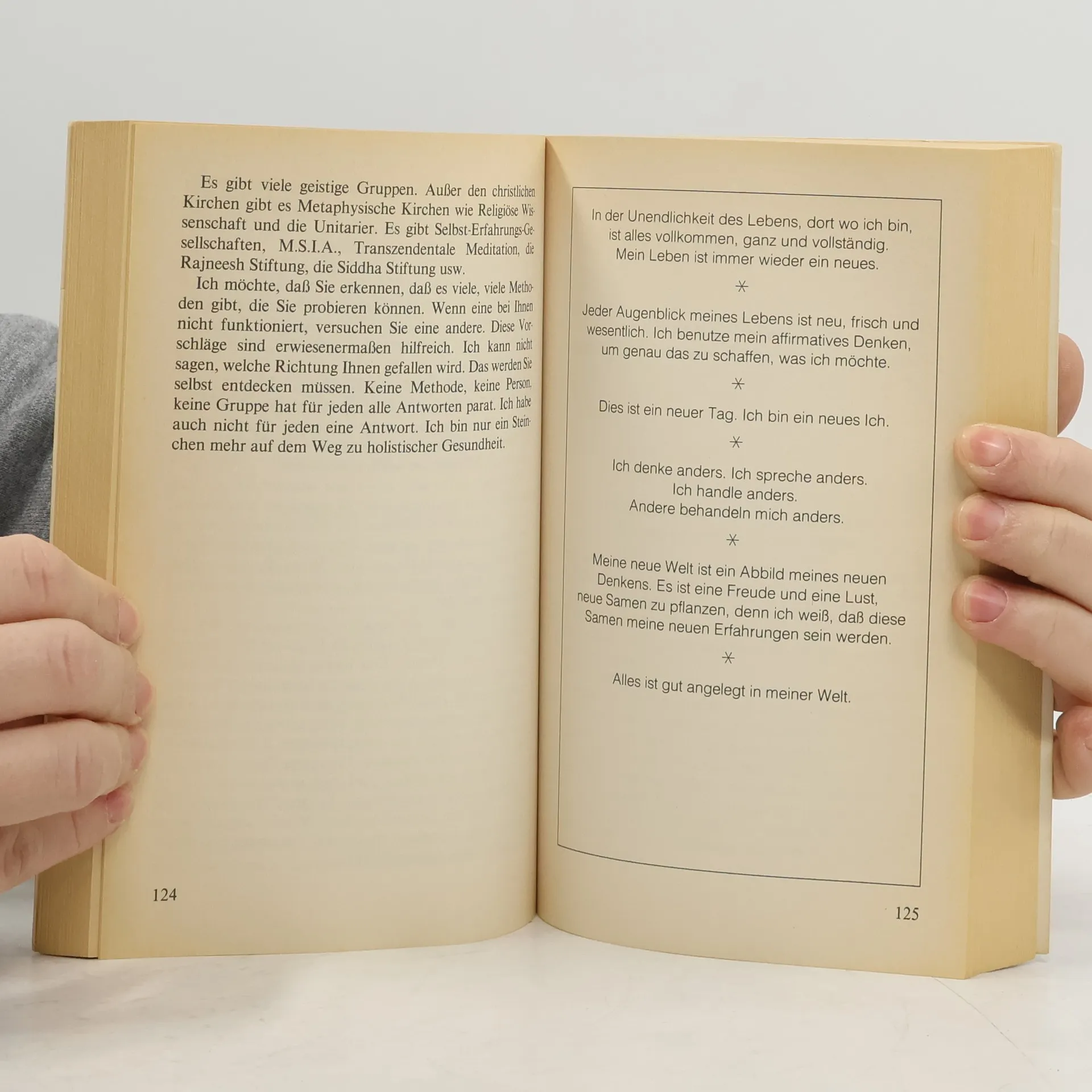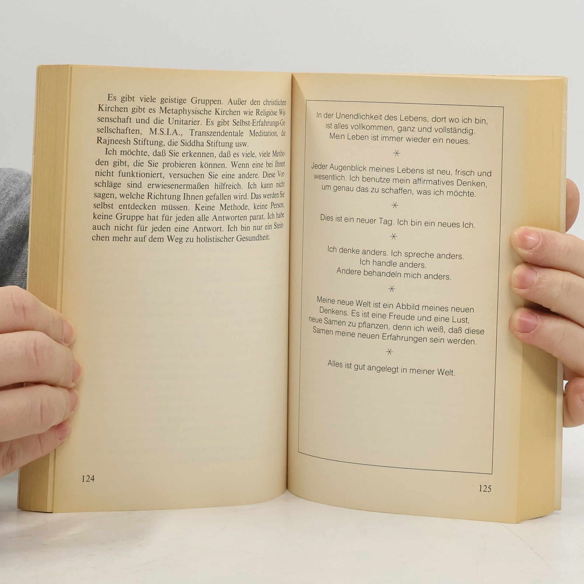 Dieses Buch hat für mich einen unvorstellbaren Wert. Als ich vor vielen Jahren an einer Angststörung litt, sah ich es im Bücherregal und kaufte es. Ich arbeitete es Kapitel für Kapitel durch und wurde gesund. Ich bin fasziniert von Louise Hay und ihrer eigenen Geschichte. Als ein Freund an Krebs erkrankte, gab ich es aus der Hand. Um so mehr freute es mich, es dieses Jahr hier zu entdecken. Ich kaufte es ein zweites Mal und bin überglücklich. So kann ich vielen Menschen helfen, ihren Körper zu heilen, indem ich von meiner Erfahrung mit dem Buch erzähle und es verleihe.