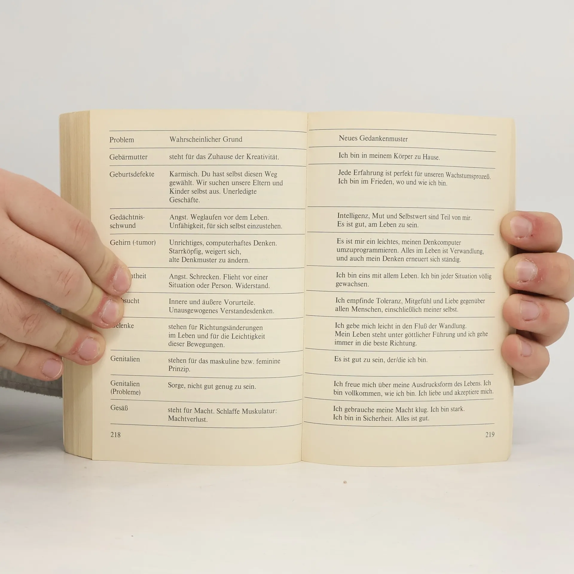 Dieses Buch hat für mich einen unvorstellbaren Wert. Als ich vor vielen Jahren an einer Angststörung litt, sah ich es im Bücherregal und kaufte es. Ich arbeitete es Kapitel für Kapitel durch und wurde gesund. Ich bin fasziniert von Louise Hay und ihrer eigenen Geschichte. Als ein Freund an Krebs erkrankte, gab ich es aus der Hand. Um so mehr freute es mich, es dieses Jahr hier zu entdecken. Ich kaufte es ein zweites Mal und bin überglücklich. So kann ich vielen Menschen helfen, ihren Körper zu heilen, indem ich von meiner Erfahrung mit dem Buch erzähle und es verleihe.