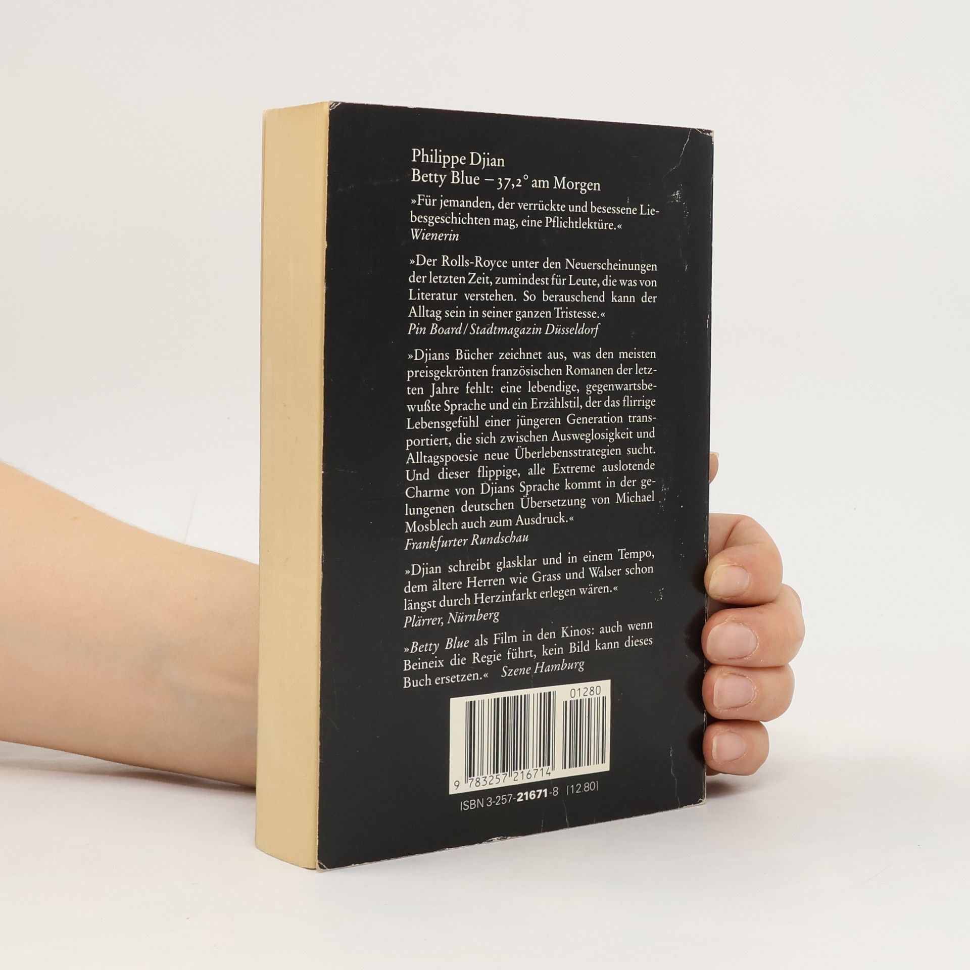 Die Geschichte eines verkappten Schriftstellers und seiner Freundin Betty, dem durchgeknallten Mädchen, das sich Ärger einholt wie andere frische Brötchen. Der Titel Betty Blue beschreibt das Gefühl, das sich durch das ganze Buch zieht: Blue. Die Traurigkeit und nervöse Spannung der Story vermischt sich mit Leichtigkeit und Kraft, einer Portion rotziger Weisheit, die typisch ist für Djian. "
