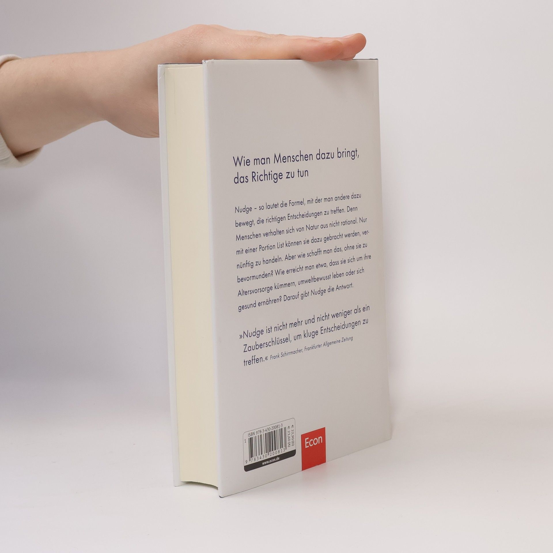 Das Konzept hat bereits viele Entscheidungsträger überzeugt, darunter den neuen US-Präsidenten Barack Obama. Anschaulich und unterhalt-sam präsentieren Richard Thaler und Cass Sunstein einen neuen Ansatz der Verhaltensökonomie, der schon heute das Denken und Handeln in Politik und Wirtschaft prägt.