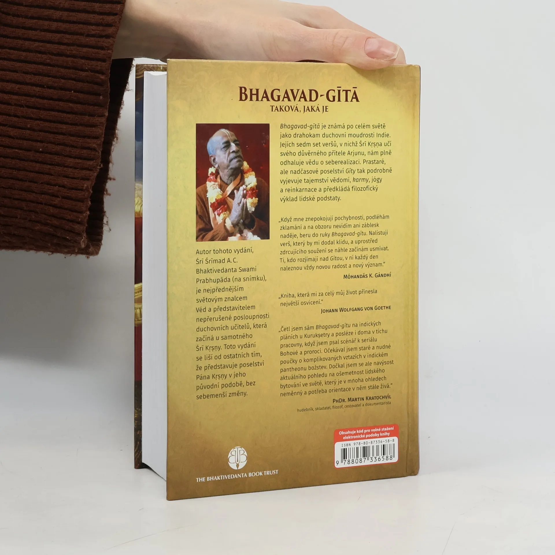 Bhagavad-gítá je známá po celém světě jako drahokam duchovní moudrosti Indie. Verše staré přes 5000 let doplněné komentáři Šríly Prbhupády plně odhalují vědu o seberealizaci a vyjevují tajemství karmy, jógy a reinkarnaci. Předkládá filozofický výklad lidské podstaty.