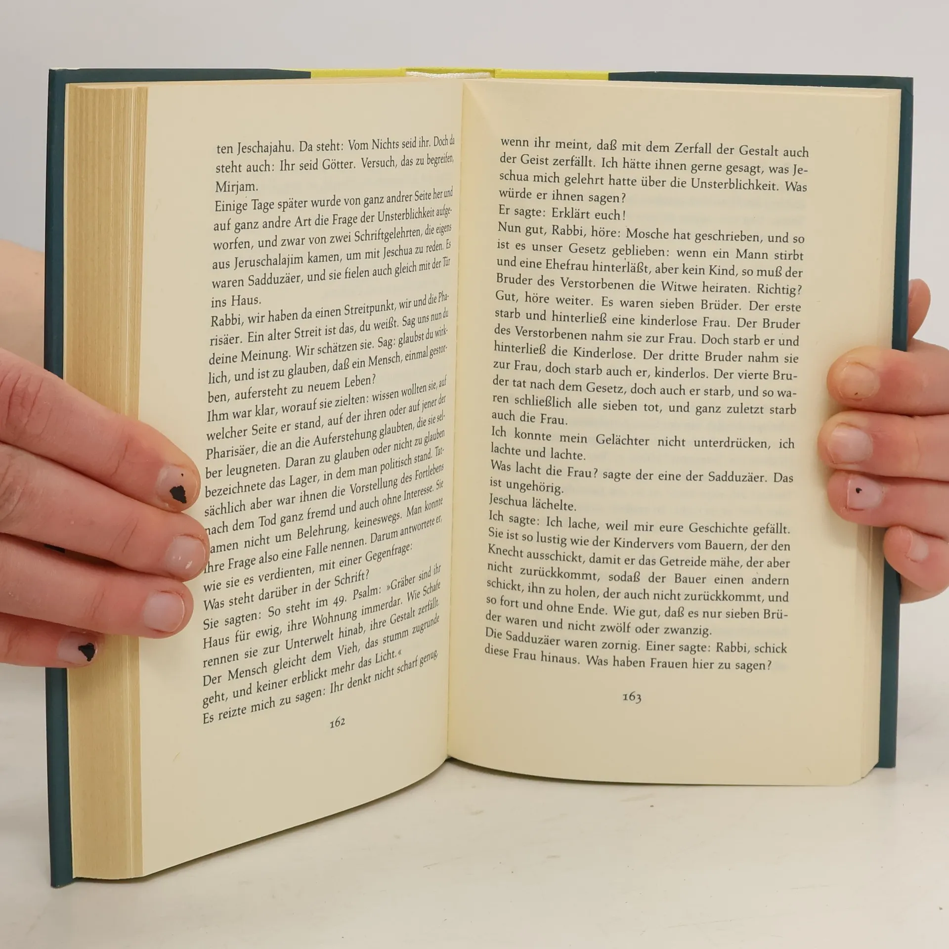 »Hier bringt eine Frau die versteinerte Männerwelt um Jesus zum Tanzen: Judas ("Jehuda") will Politik machen, Johannes ("Jochanan") grübelt ewig, Jesus ("Jeschua") heilt, und Mirjam aus Magdala, die schöne Makkabäer-Tochter, sucht sich selber und den Sinn des Lebens. Sie ist Rebellin und Getreue, Begleiterin und oft Zweifelnde, eine starke, liebende Frau. Sie harrte aus unter dem Kreuz und sah als erste Jesus nach seinem Tod. Eine Frau also von zweifelhaftem Ruf war zuerst vertraut mit dem größten Mysterium des christlichen Glaubens. "Weibergeschwätz" war die erste Reaktion der Männer, als Mirjam von dem "Auferstandenen" erzählte... Luise Rinser erweckt den Mann aus Nazareth zu neuem Leben. Mirjam erinnert abendländische Christen an ihre Jesus-Vergeßlichkeit.« Franz Alt in Die Zeit
