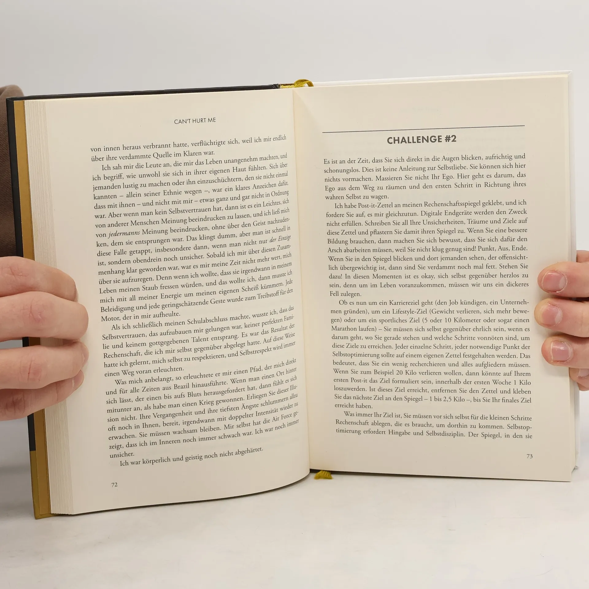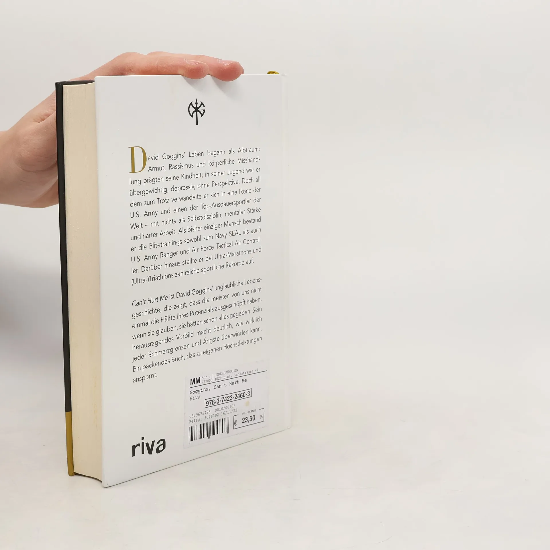 Für David Goggins war die Kindheit ein Albtraum – Armut, Vorurteile und körperliche Misshandlung verfolgten ihn bis in seine Träume. Doch durch Selbstdisziplin, mentale Stärke und harte Arbeit verwandelte er sich vom depressiven, übergewichtigen Jugendlichen ohne Perspektive in eine Ikone der U. S. Army und einen der Top-Ausdauersportler der Welt. Er ist der Einzige, der je das Elitetraining sowohl zum Navy SEAL als auch U. S. Army Ranger und Air Force Tactical Air Controller bestand, außerdem stellte er zahlreiche Ausdauerrekorde auf. In »Can’t Hurt Me« erzählt er seine wahrlich erstaunliche Lebensgeschichte und zeigt, dass die meisten von uns nicht einmal die Hälfte ihres Potenzials ausschöpfen. Goggins bezeichnet dies als 40-Prozent-Regel. Sein herausragendes Beispiel veranschaulicht hingegen, wie es jedem gelingen kann, das zu ändern und Schmerzgrenzen und Ängste zu überwinden.